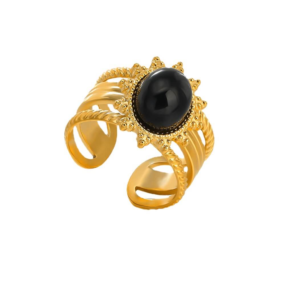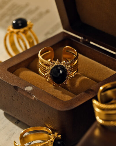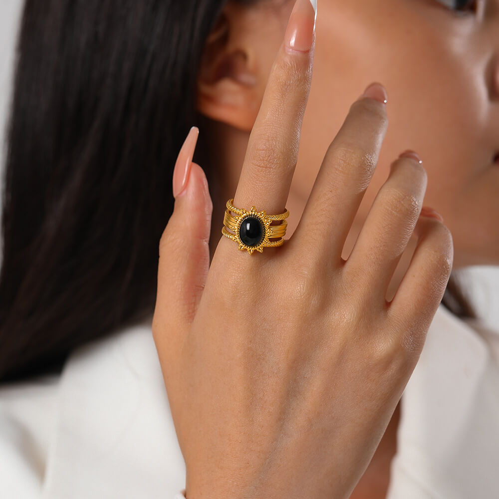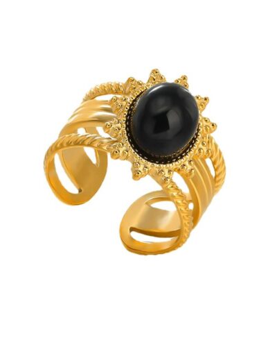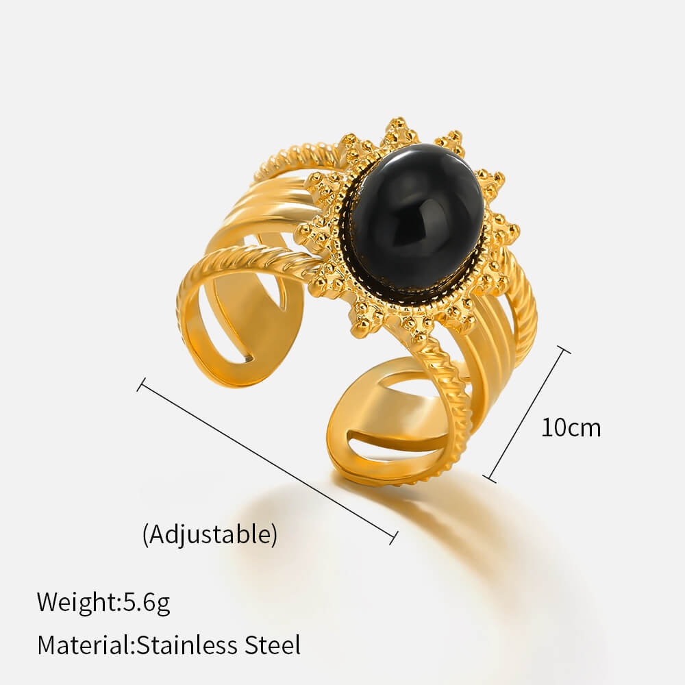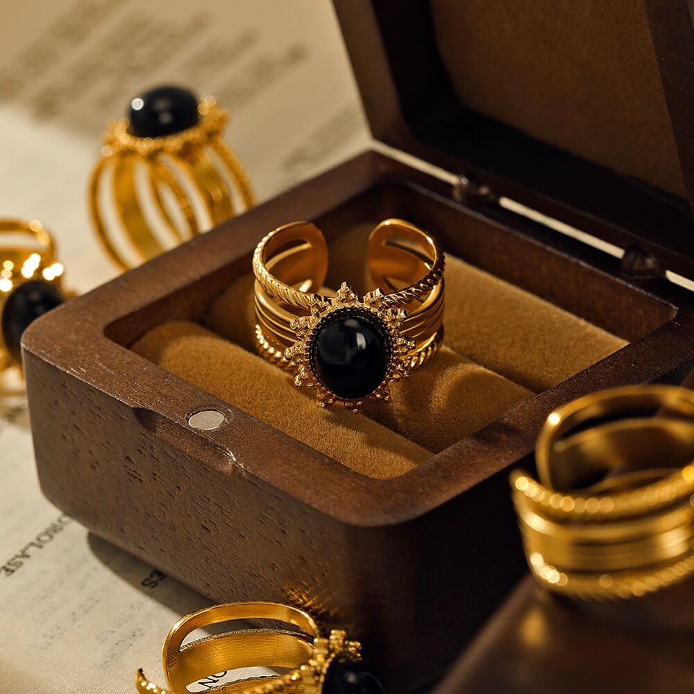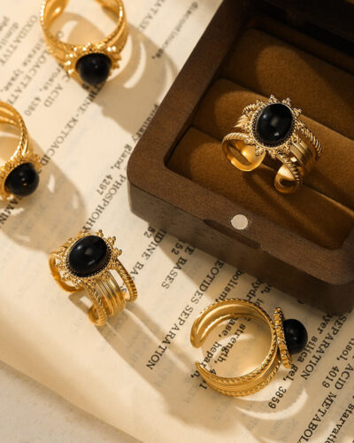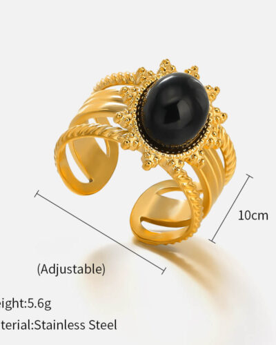 Item: 18K Gold Plated Black Obsidian Rings Stainless Steel