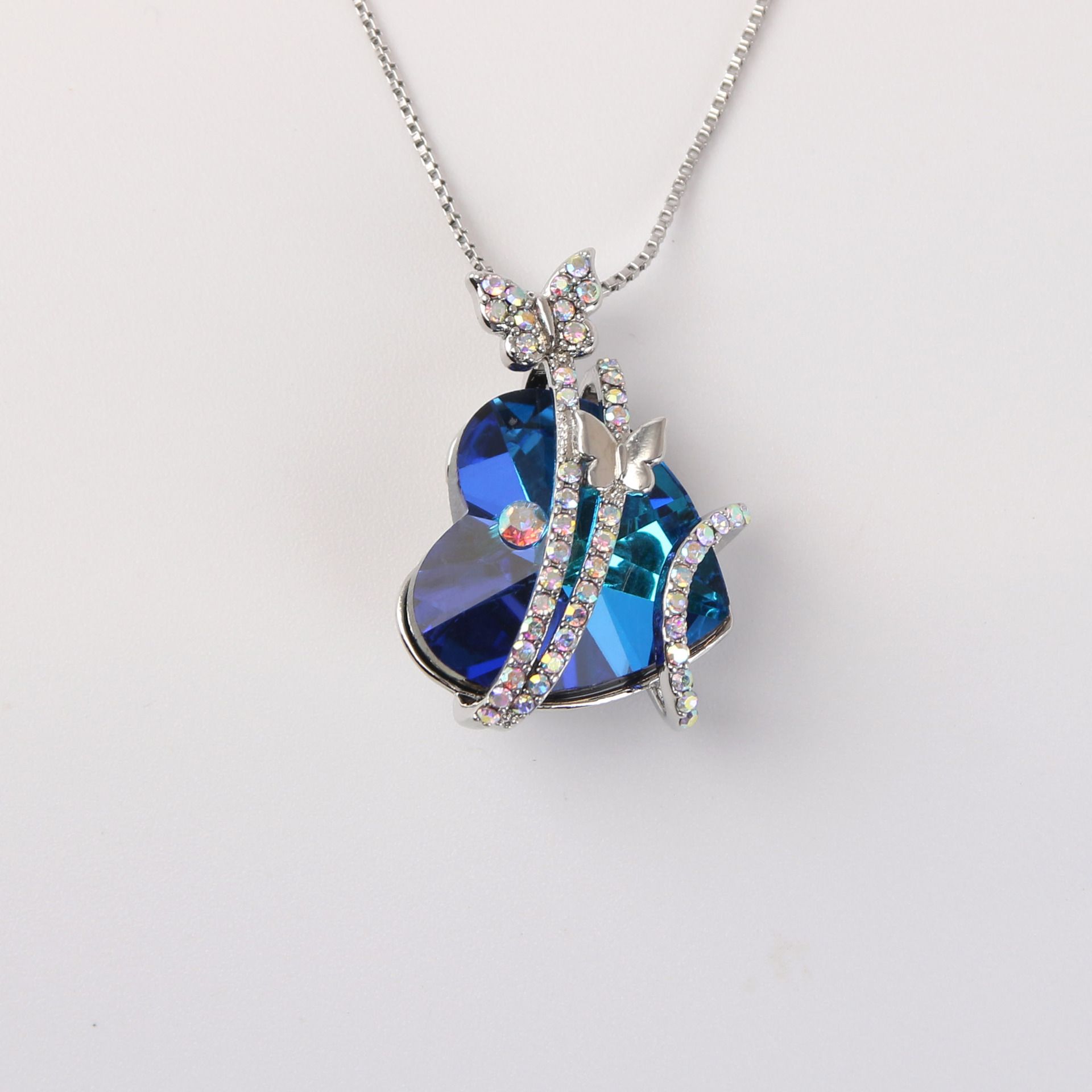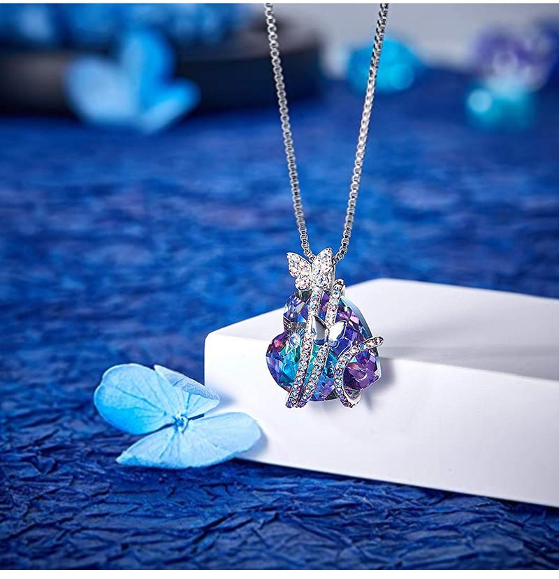 The main body of the Blue Heart Necklace is made of high-quality alloy, with a blue gemstone as the main stone and a three-dimensional butterfly as an embellishment. It is the perfect choice as a gift for your mother or wife.