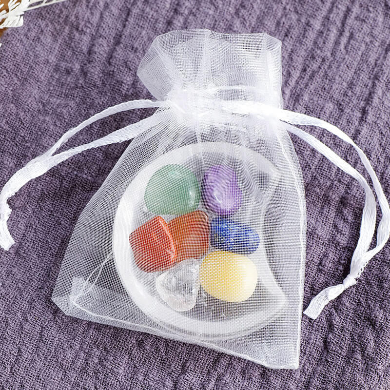 - Moon-Shaped Bowl & 7 Colors Natural Carved Stones Set