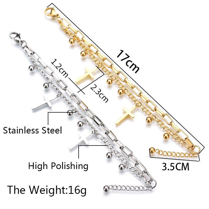 This cross stainless steel bracelet perfectly combines the cross element with today’s trendy jewelry. The cross pendant sways slightly with the movement of the arm, allowing faith to always be with you.