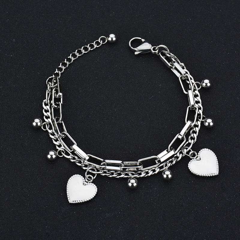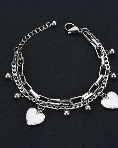 Double-Layer Heart and Cross Stainless Steel Bracelet
