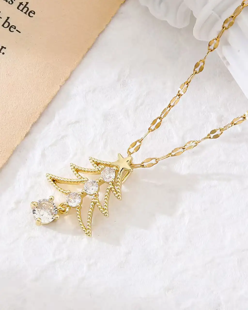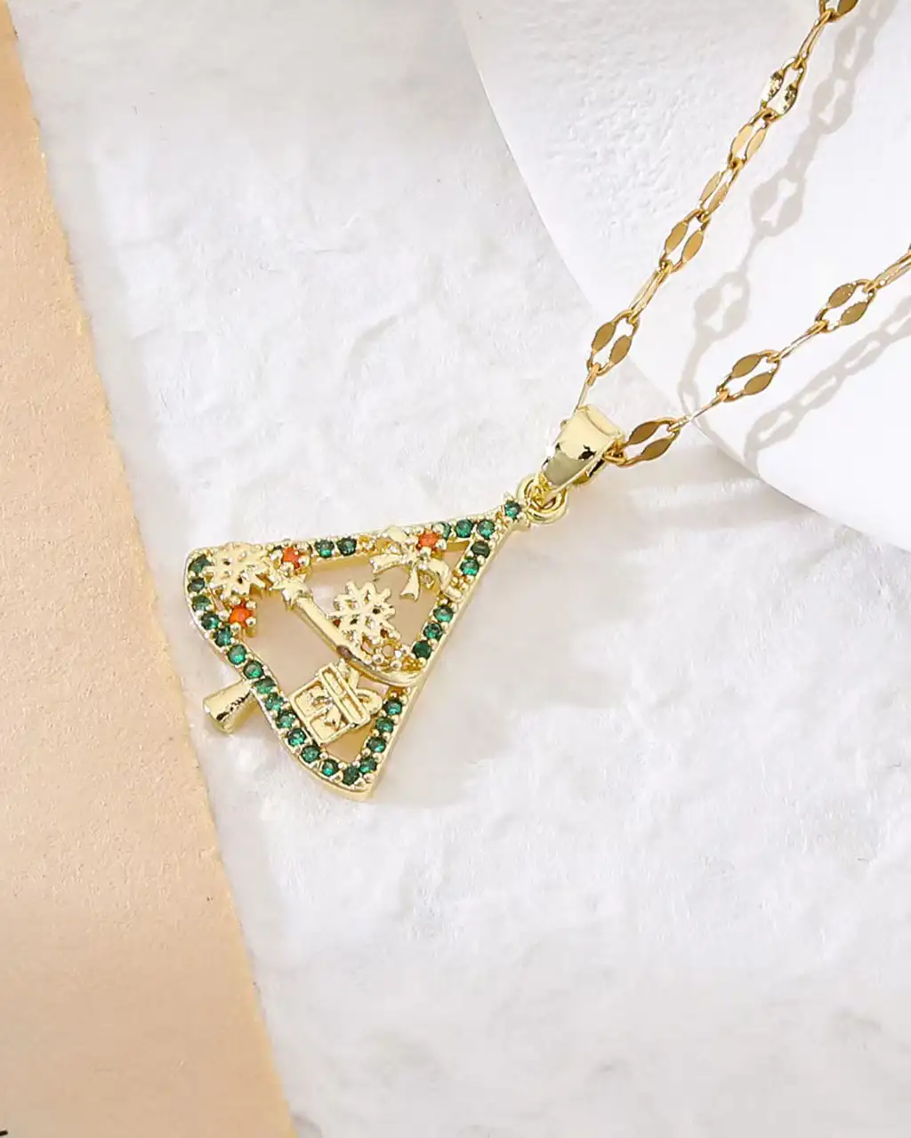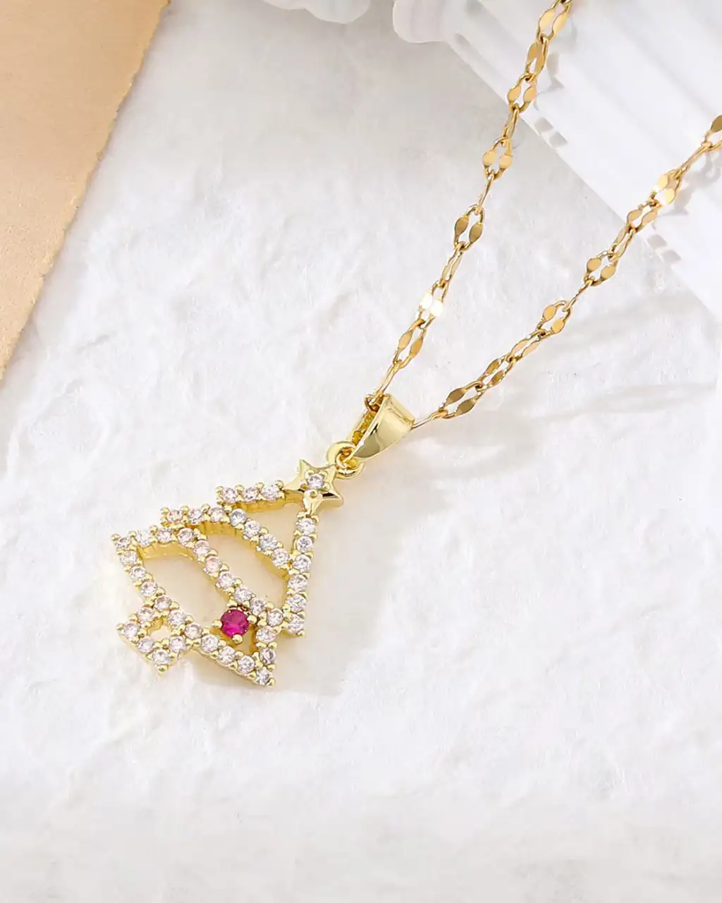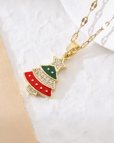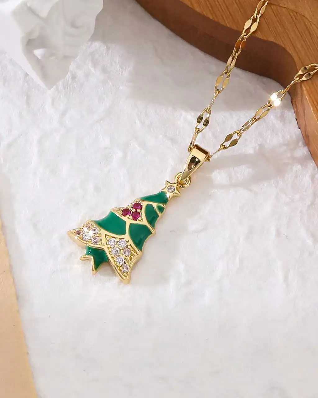 - This Christmas Tree Necklace is crafted from exquisite stainless steel with a delicate lip chain, exuding pure elegance. Featuring various Christmas tree designs 🎄 to complement all your outfits, it ensures you’ll be the most captivating person on the streets this Christmas Day.