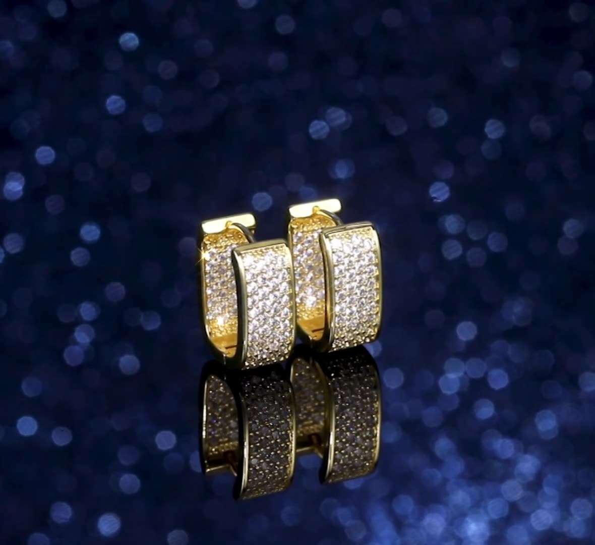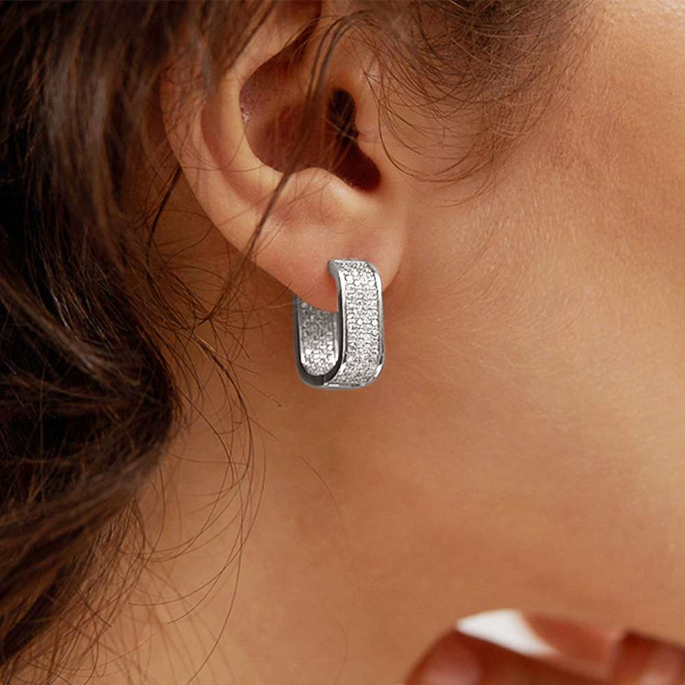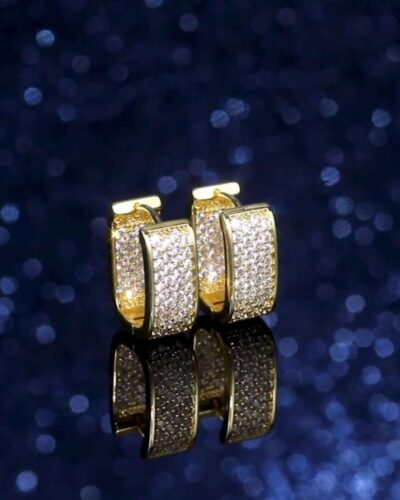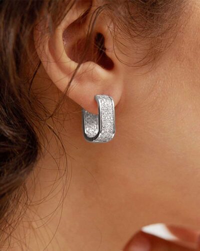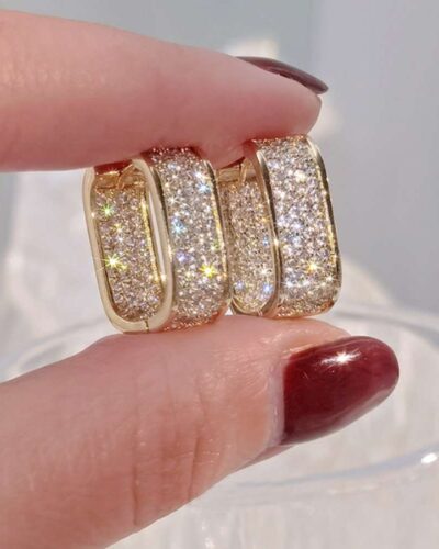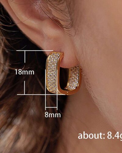 Fashion Hoop Earring with Zircon Design. These widened earrings are crafted from premium brass and inlaid with zircon stones, gleaming with light. The unique design resists scratching clothing, evoking an elegant presence.