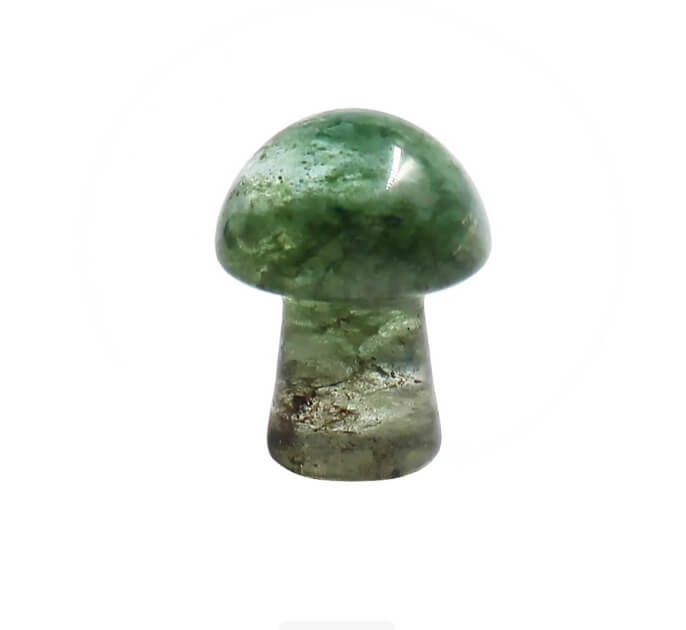 - Made of natural moss agate, this mushroom can bring healing energy and good luck to you.