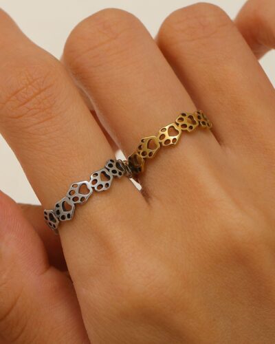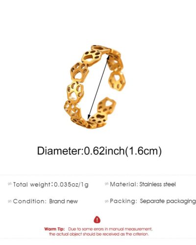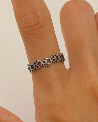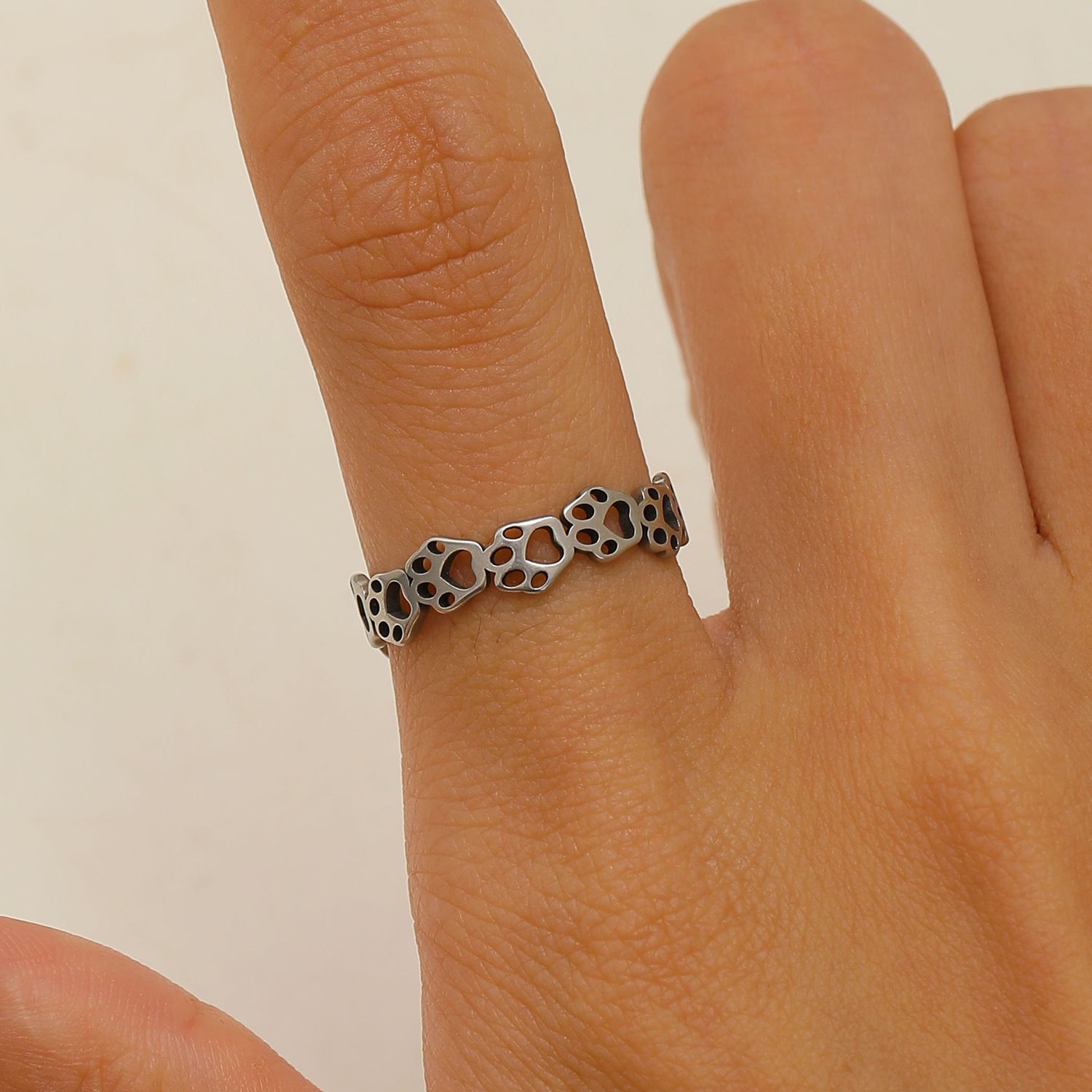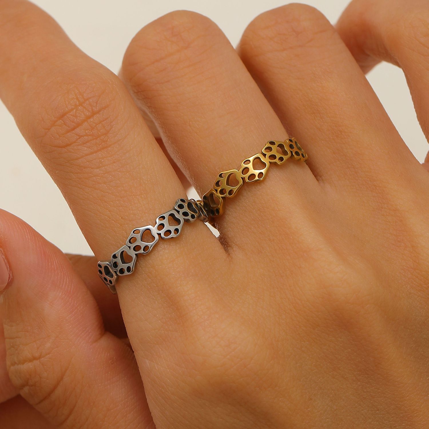 Dutý prsten z nerezové oceli s designem zvířecí tlapky🐾! Tento prsten má dutý design ve tvaru zvířecí tlapky, který vytváří jedinečný a poutavý tvar. Materiál z nerezové oceli zajišťuje, že prsten je pevný, odolný proti opotřebení a vyblednutí.