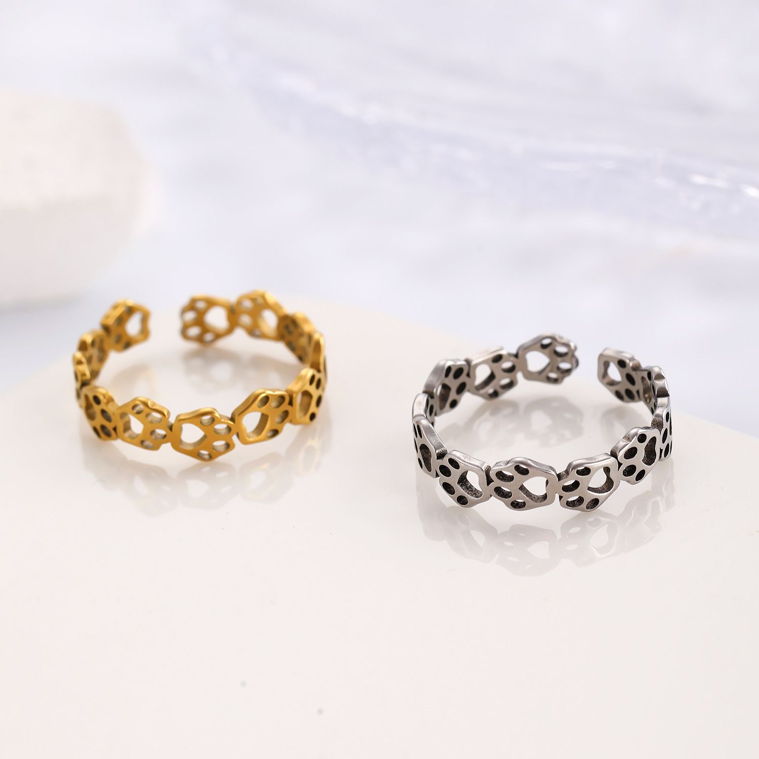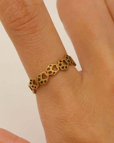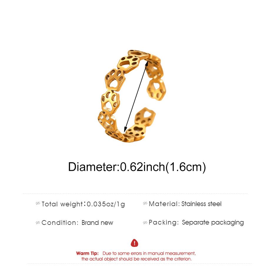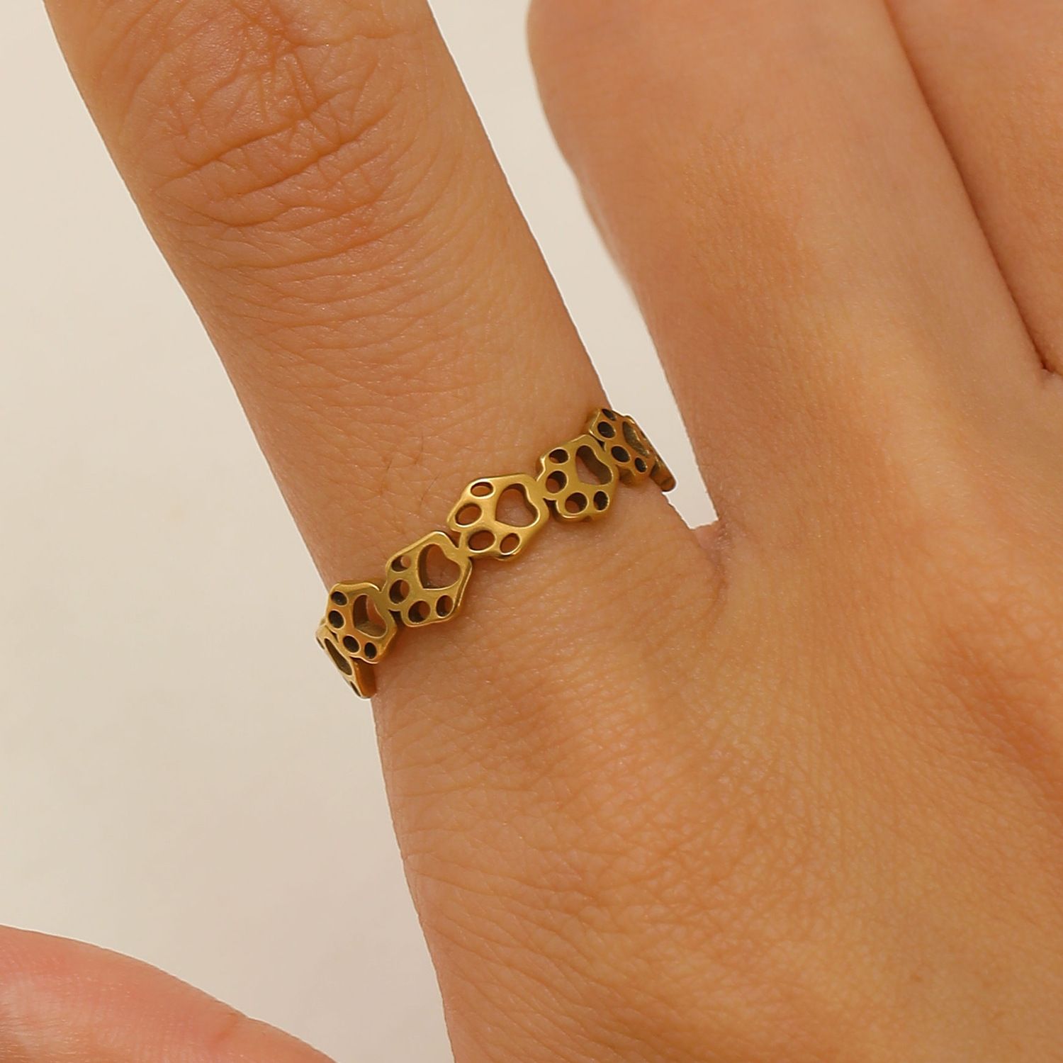 Dutý prsten z nerezové oceli s designem zvířecí tlapky🐾! Tento prsten má dutý design ve tvaru zvířecí tlapky, který vytváří jedinečný a poutavý tvar. Materiál z nerezové oceli zajišťuje, že prsten je pevný, odolný proti opotřebení a vyblednutí.