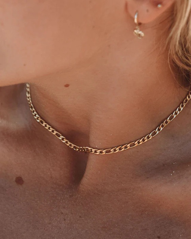 Minimalist 18K Gold Plated Stainless Steel Figaro Chain Everyday Wear