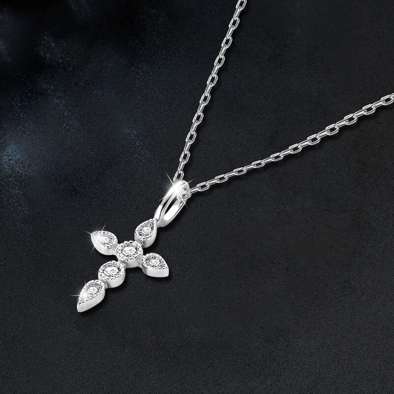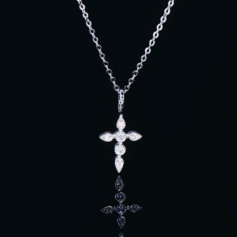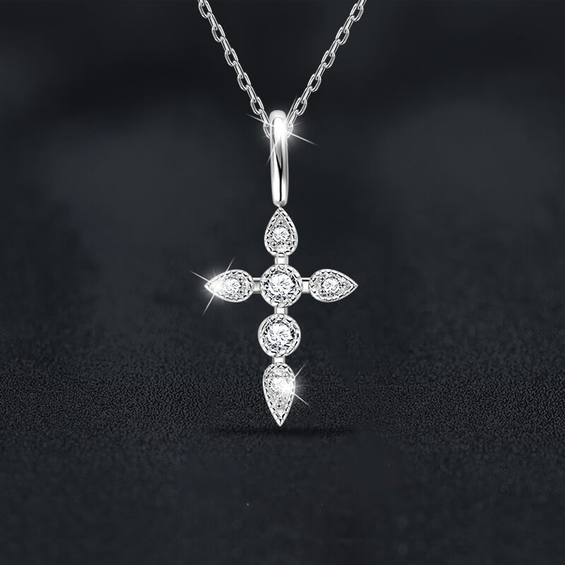 Moissanitový náhrdelník s křížem a barevným přívěskem