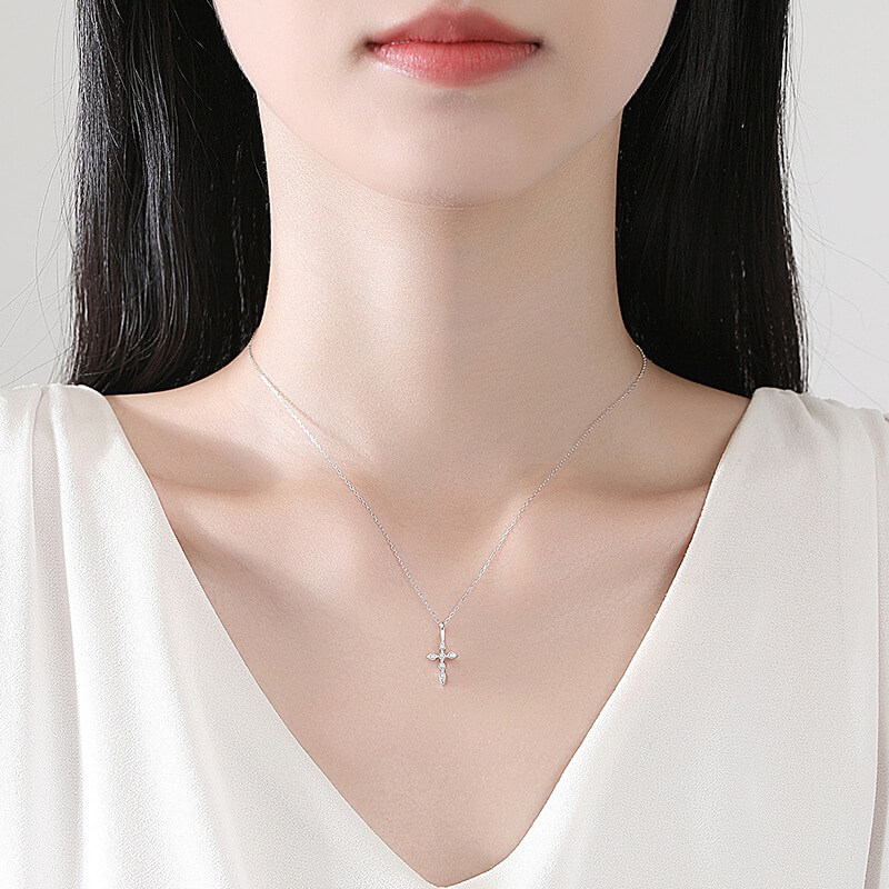 Stříbrný 925 náhrdelník s moissanitovým křížem ✝️, klasický tvar kříže osazený několika moissanity, stříbrný 925 řetízek, šetrný k pokožce a antialergický ✨.
