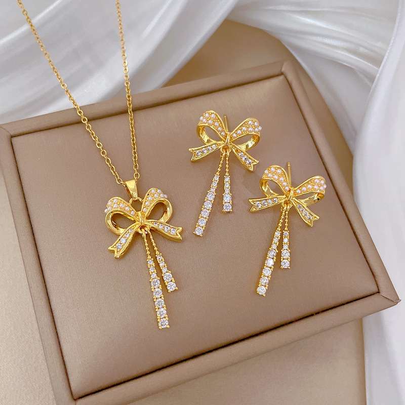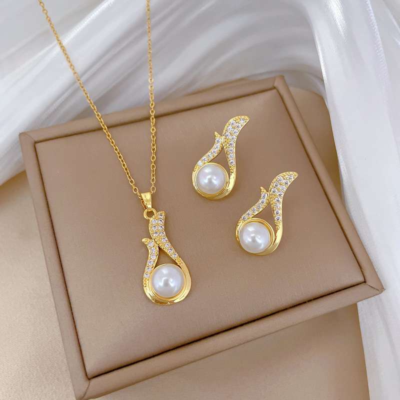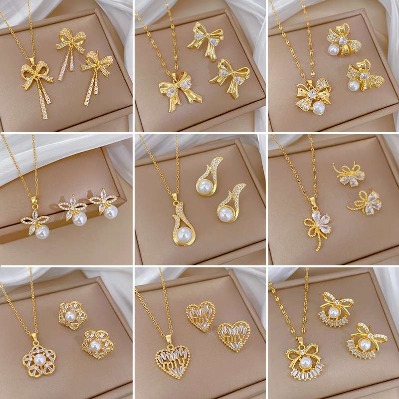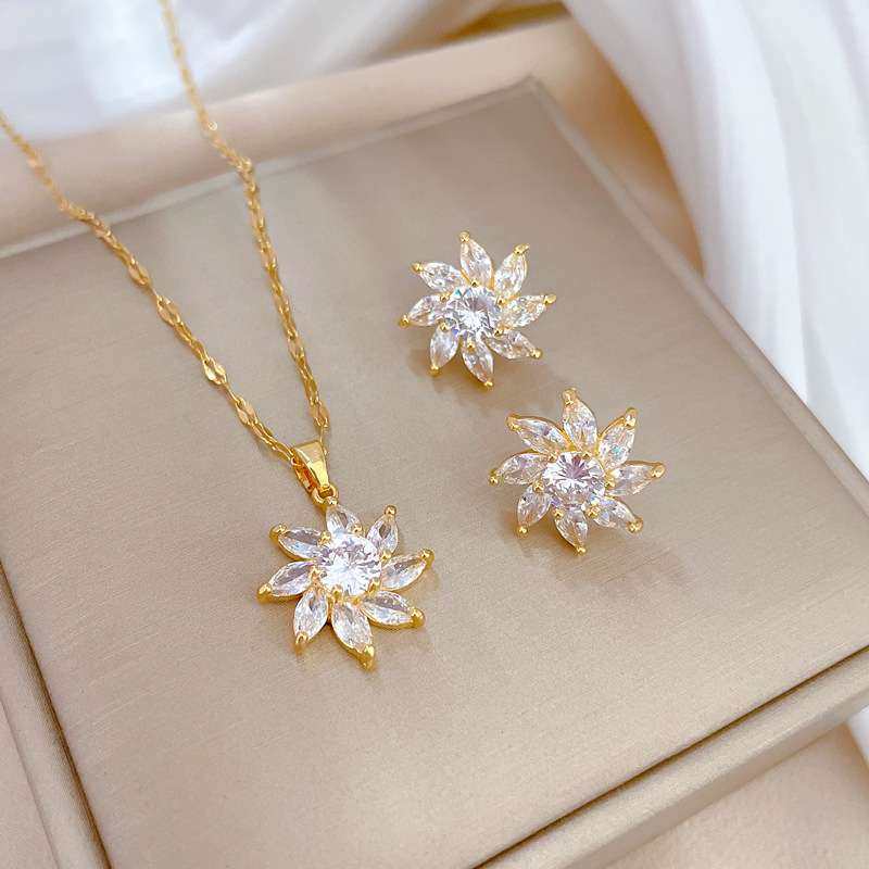 Necklace and Earring Set with Zircon Pendant✨. This exquisite jewelry set is crafted from fine brass and paired with zircon, creating a delicate and lustrous look. The entire set is easily matched with any outfit.