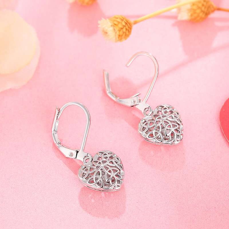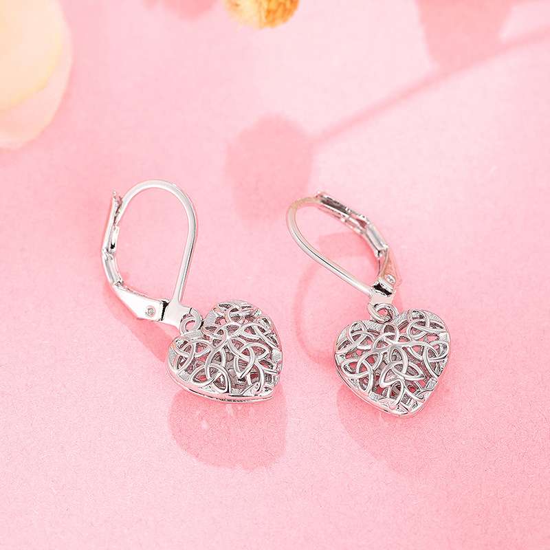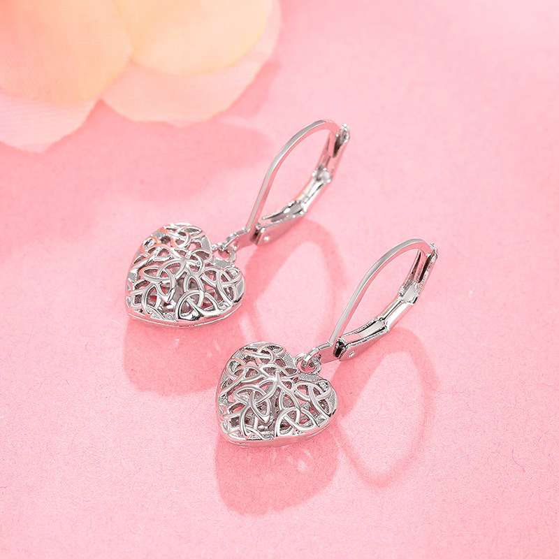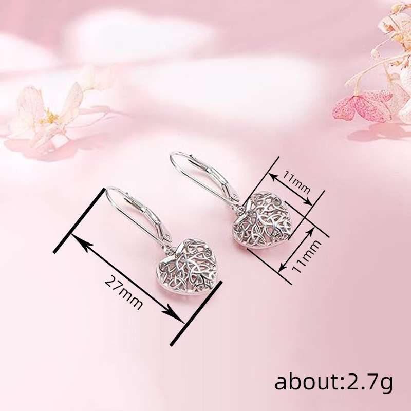 Openwork Heart Fashion Pendant Earring Wholesale. Made of high-quality brass, these heart-shaped pendant earrings are lightweight and non-irritating, making them comfortable to wear for extended periods.