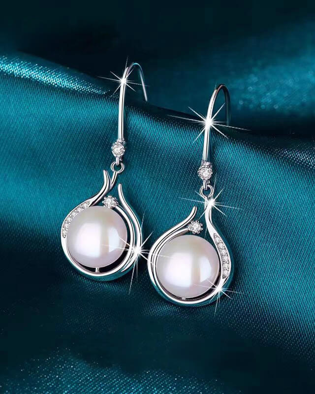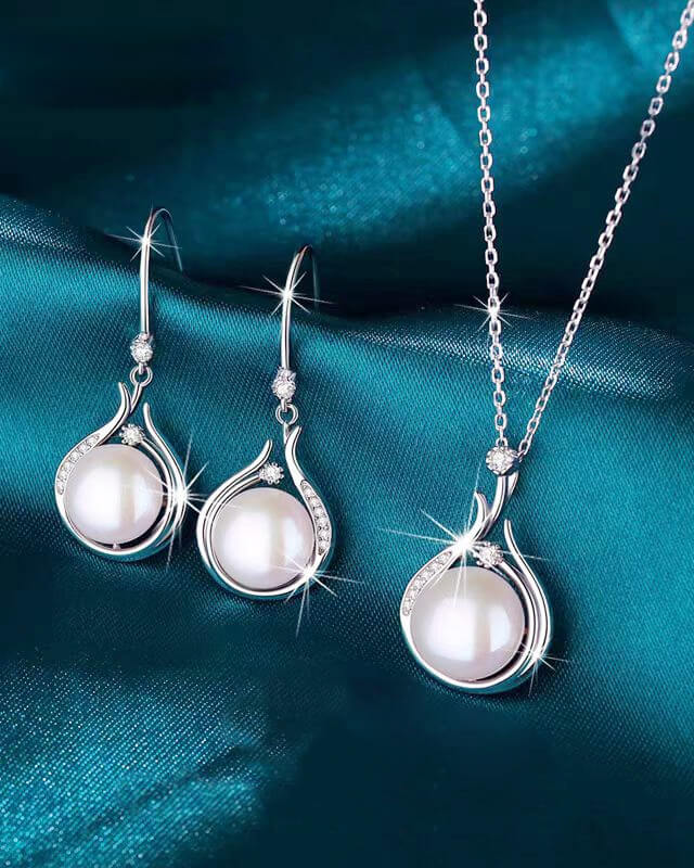 999 sterling silver + cultured freshwater pearls + cubic zirconia accents. Classic drop design with pearls surrounded by tiny CZs—elegant and versatile. Lead/nickel-free, hypoallergenic, lightweight for all-day comfort. This Pearl Drop Necklace and Dangle Earrings are perfect for daily wear or special occasions.