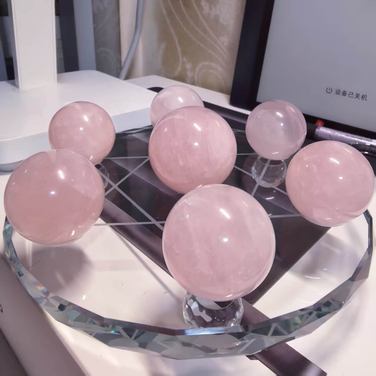 - Rose quartz crystal is also called the stone of love and passion. Placing the rose quartz sphere in home office is believed to eliminate negative energy, purify your mind, attract good luck, and help you keep calm and relaxed.