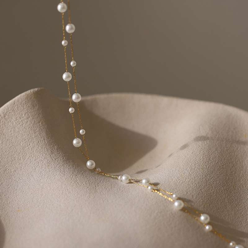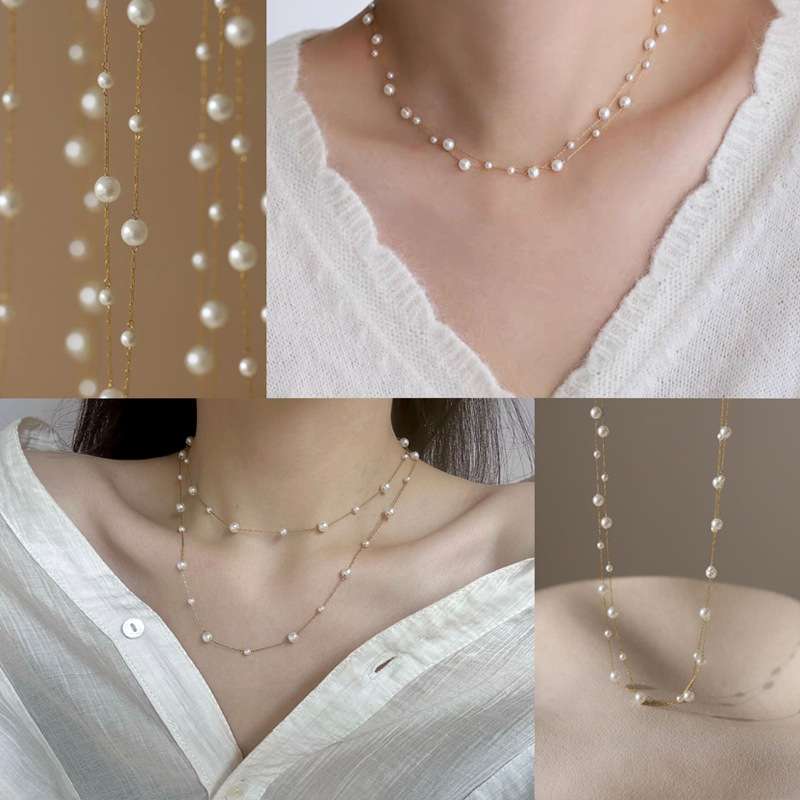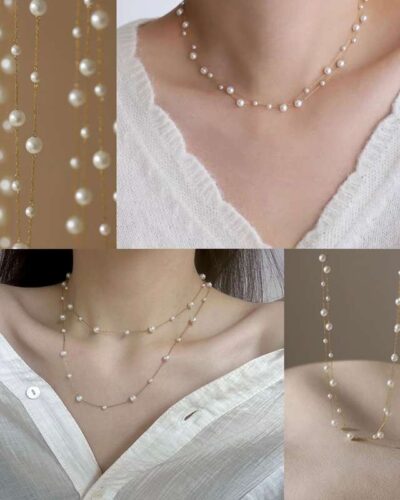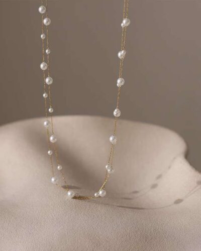 - This elegant Round Pearl Necklace is crafted by cleverly combining multiple lustrous round pearls with stainless steel. The perfect necklace length is ideal for women.