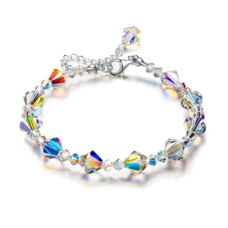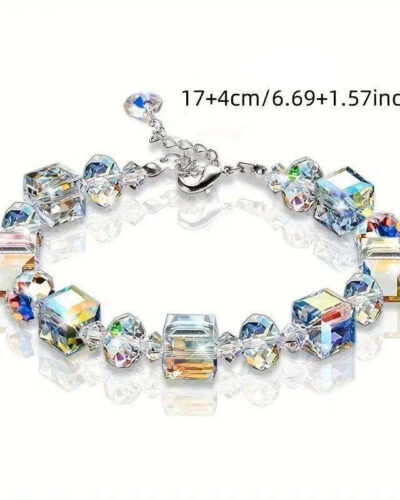 Čtvercový broušený módní křišťálový náramek Velkoobchod. Náramek s geometrickým čtvercovým brusem z umělého křišťálu má ostré hrany, které vytvářejí průsvitný, zářivý lesk. Jeho minimalistický design doplní každou příležitost.