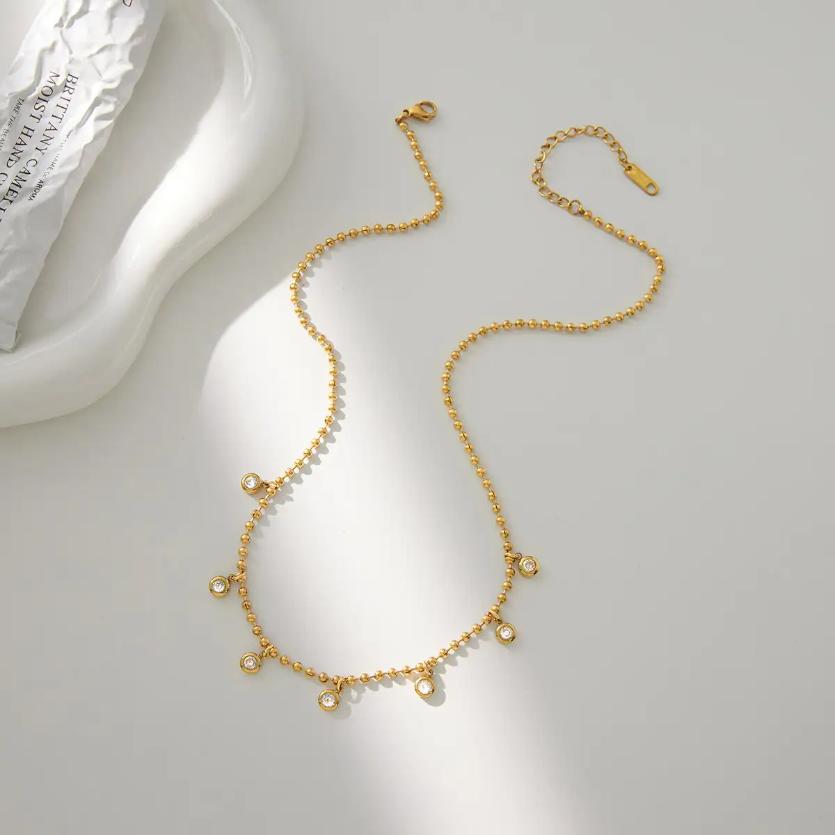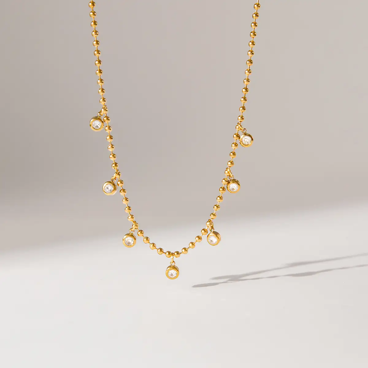 Elegant 18K Gold Plated Stackable Stainless Steel CZ Pendant Necklace