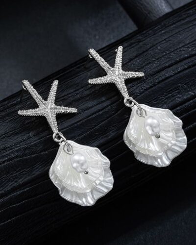 - Jedinečné náušnice z perel a mušlí ve stylu hvězdic na dovolené