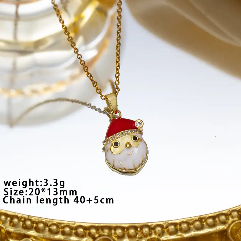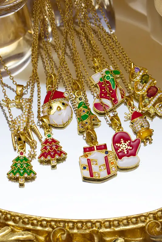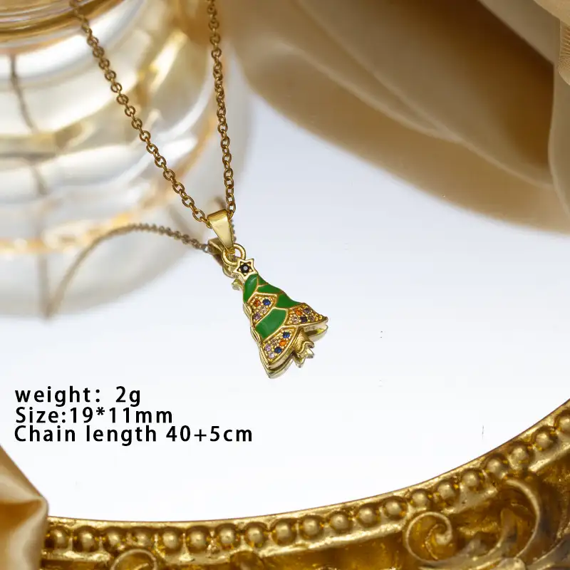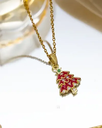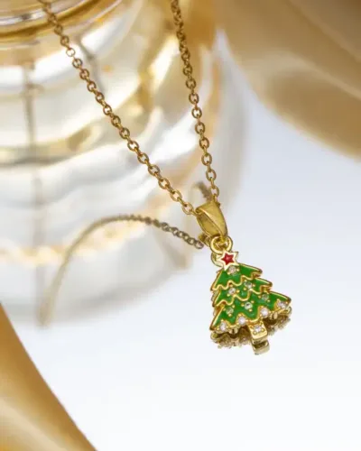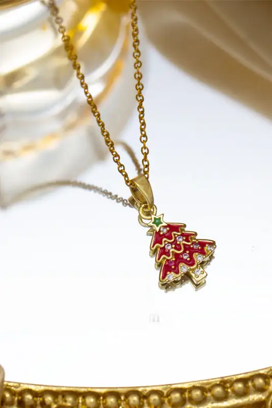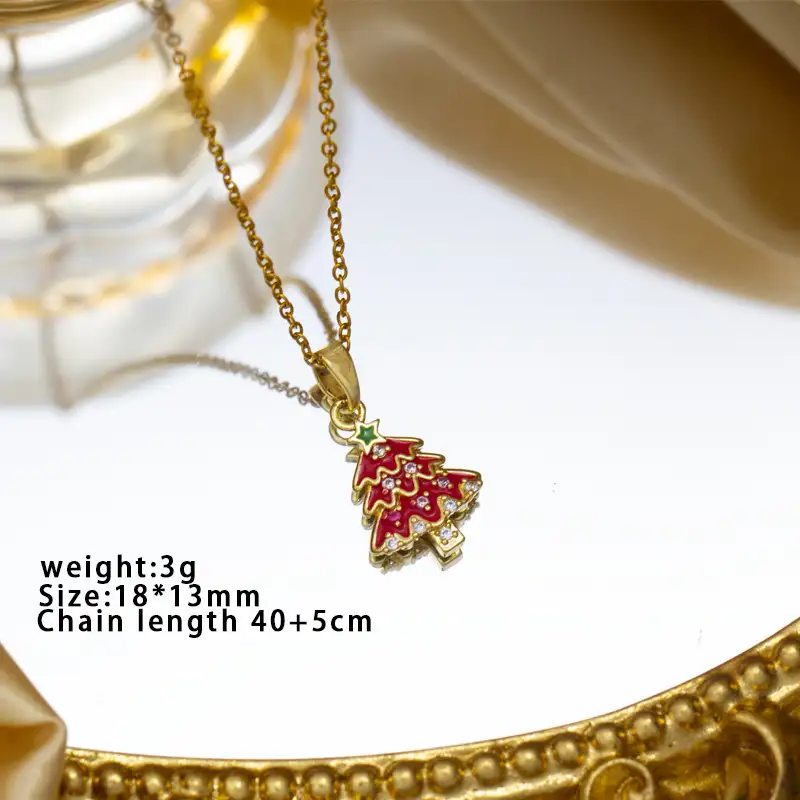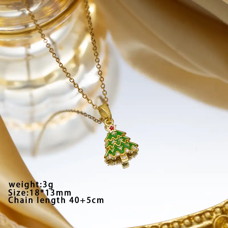 - This Gold Christmas Necklace is crafted from premium stainless steel, perfect for wearing during the holiday season. It pairs seamlessly with sweaters or formal gowns, radiating festive cheer.