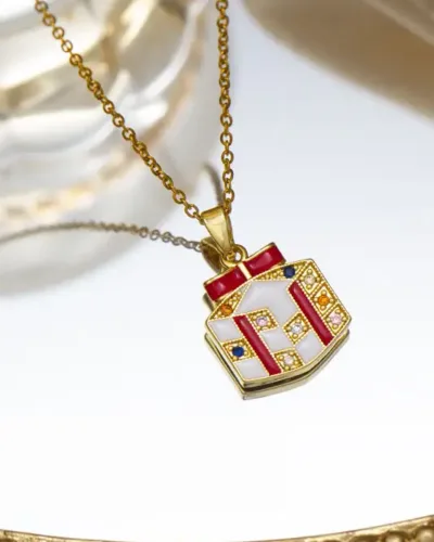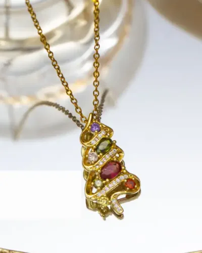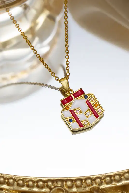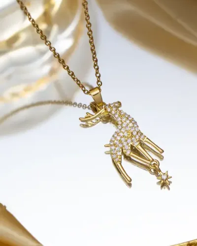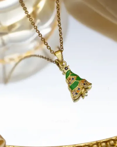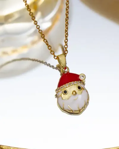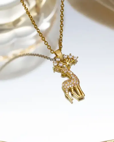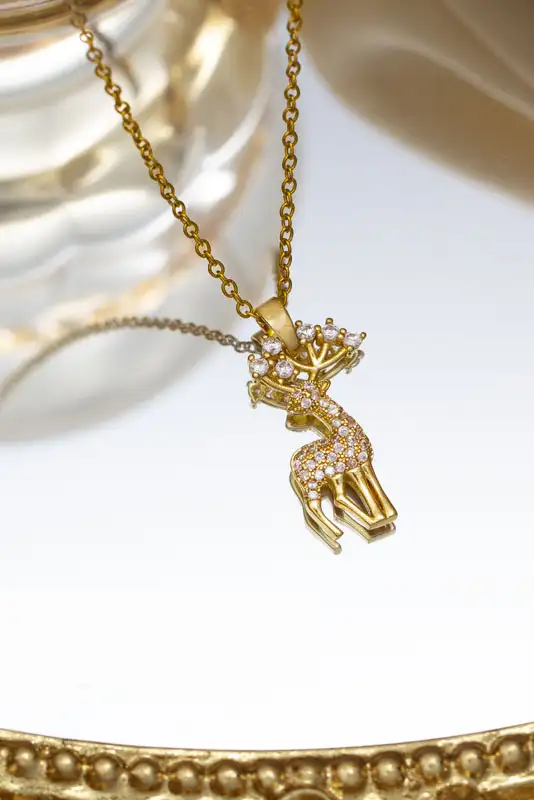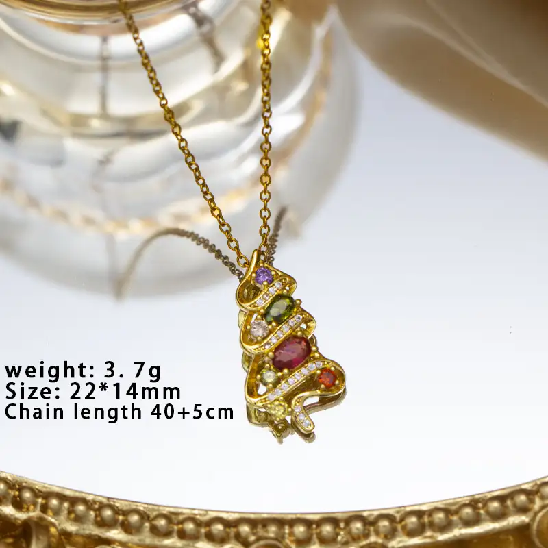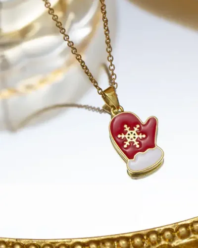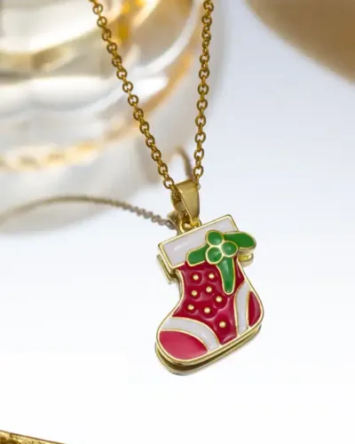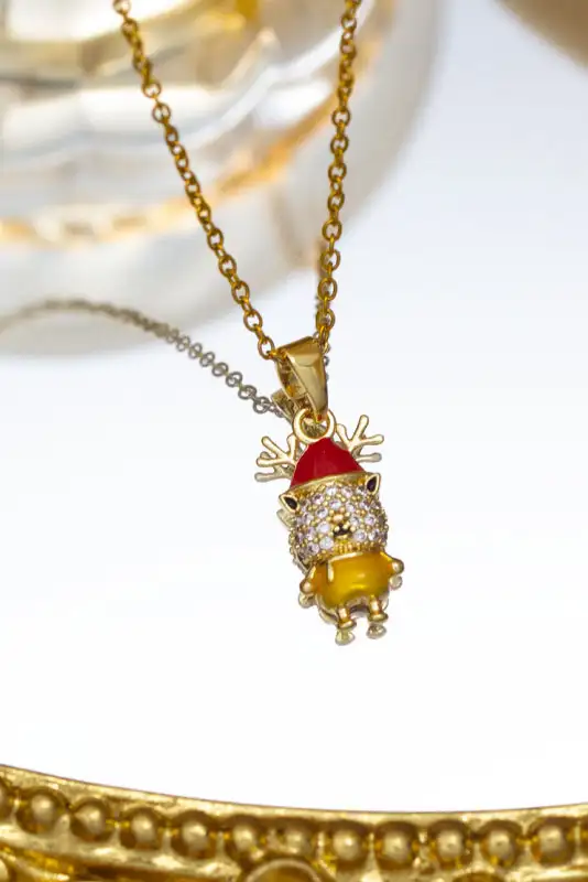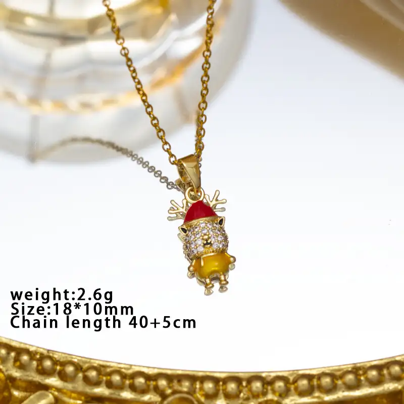 - This Gold Christmas Necklace is crafted from premium stainless steel, perfect for wearing during the holiday season. It pairs seamlessly with sweaters or formal gowns, radiating festive cheer.