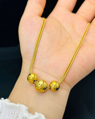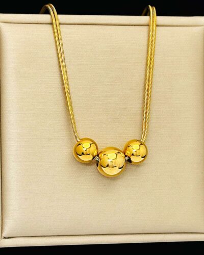 Triple Lucky Bead Gold Plated Stainless Steel Ball Necklace