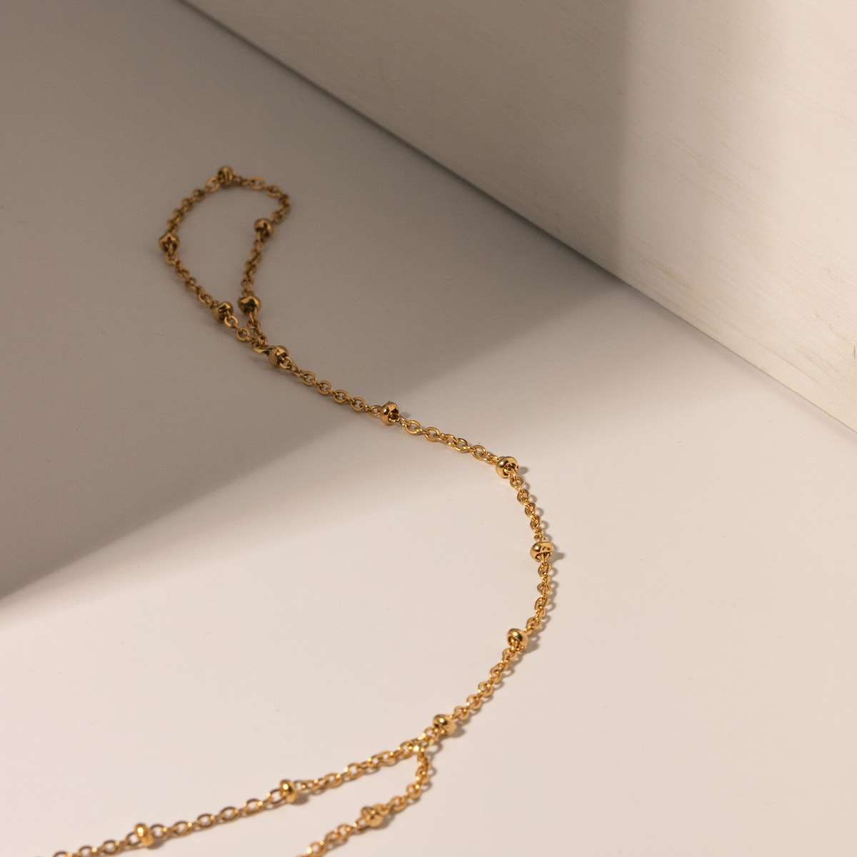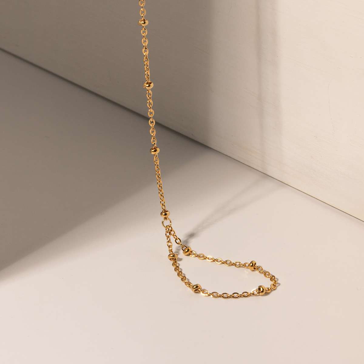 This women’s stainless steel chain bracelet features a finger-link design and is plated with 18K gold to ensure its durability. The bracelet looks elegant and adds a touch of class and charm to your everyday outfits.