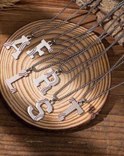 This Alphabet pendant necklace features a baseball theme ⚾, showcasing hip-hop style and energy. Available in silver and black, it’s perfect for sporty young people, highlighting their individuality and vibrant spirit.