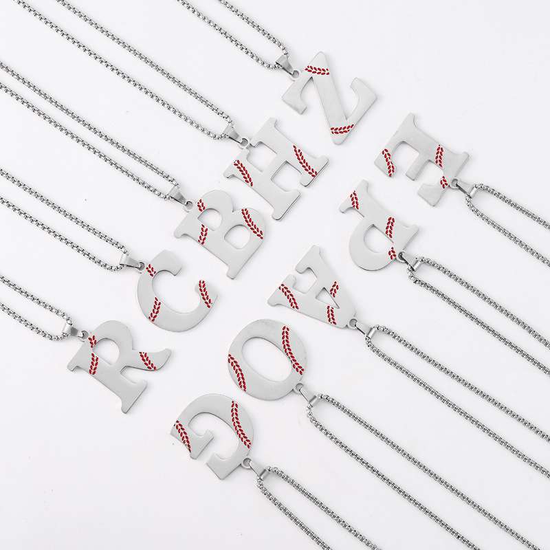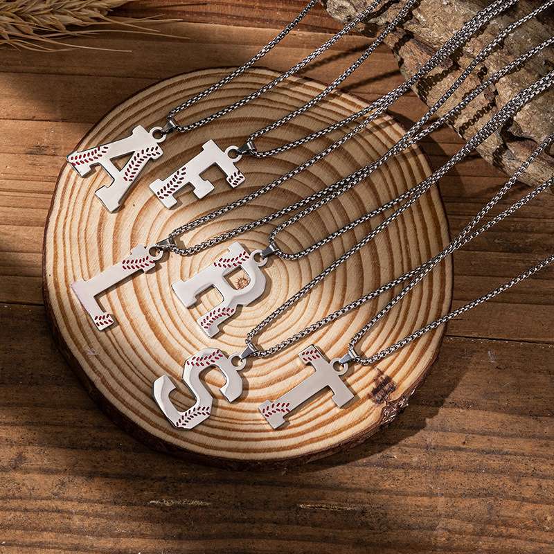 Hip-hop Baseball Stainless Steel Alphabet Pendant Necklace
