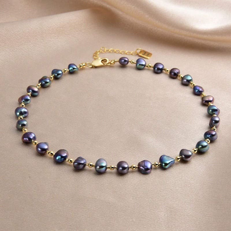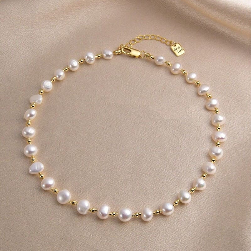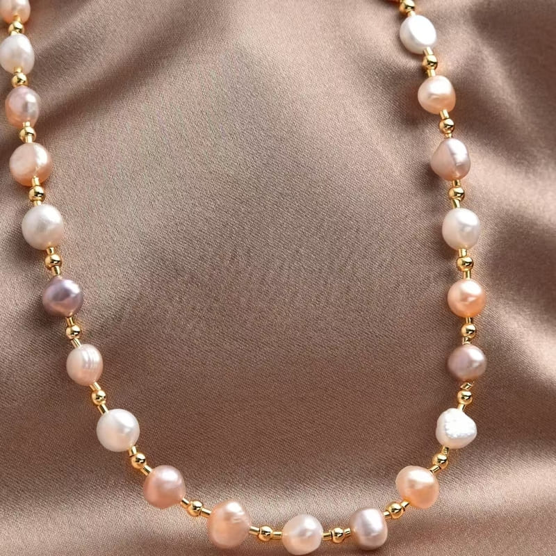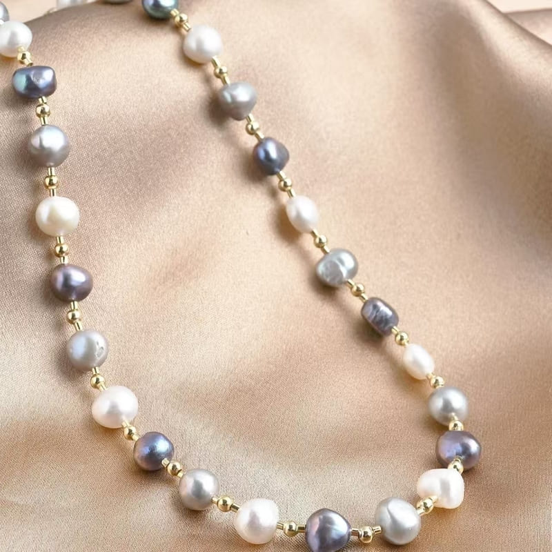 Stainless Steel Freshwater Baroque Pearl Necklace Snake Chain