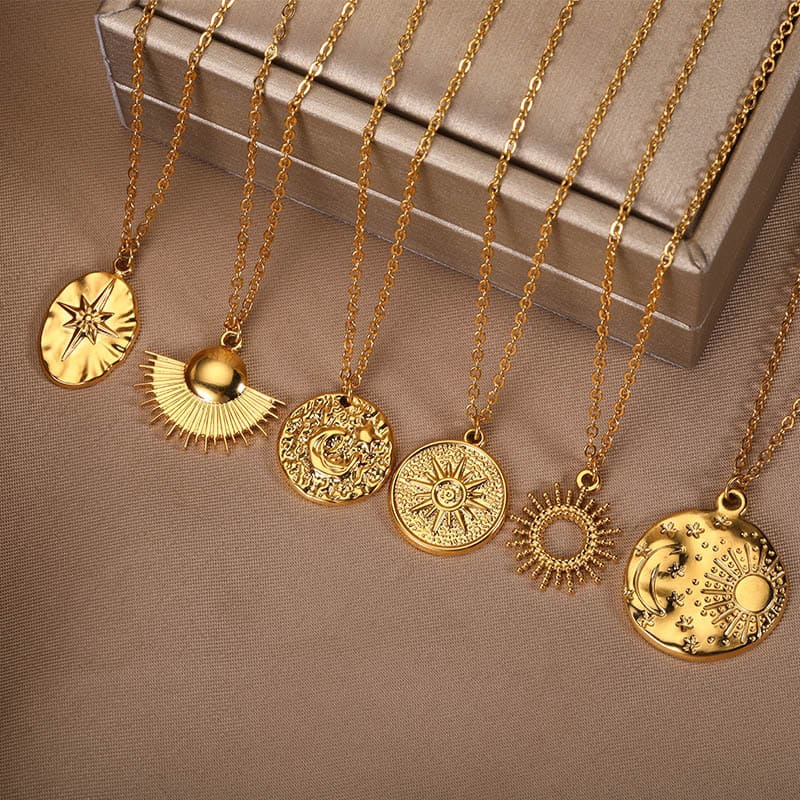 304 Dainty Stainless Steel Necklace Sun Shaped Coin Pendant