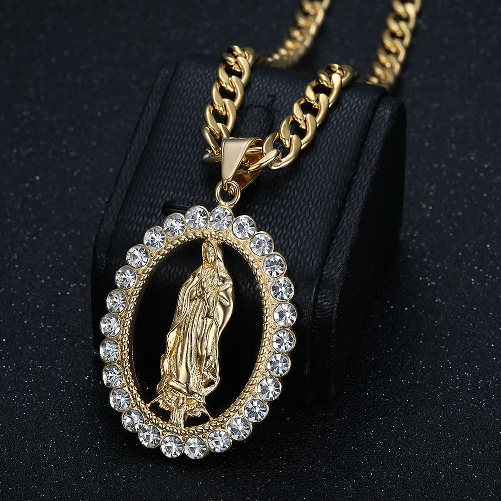 Hip-hop Gold Plated Mother Mary Pendant Necklace with Zircon