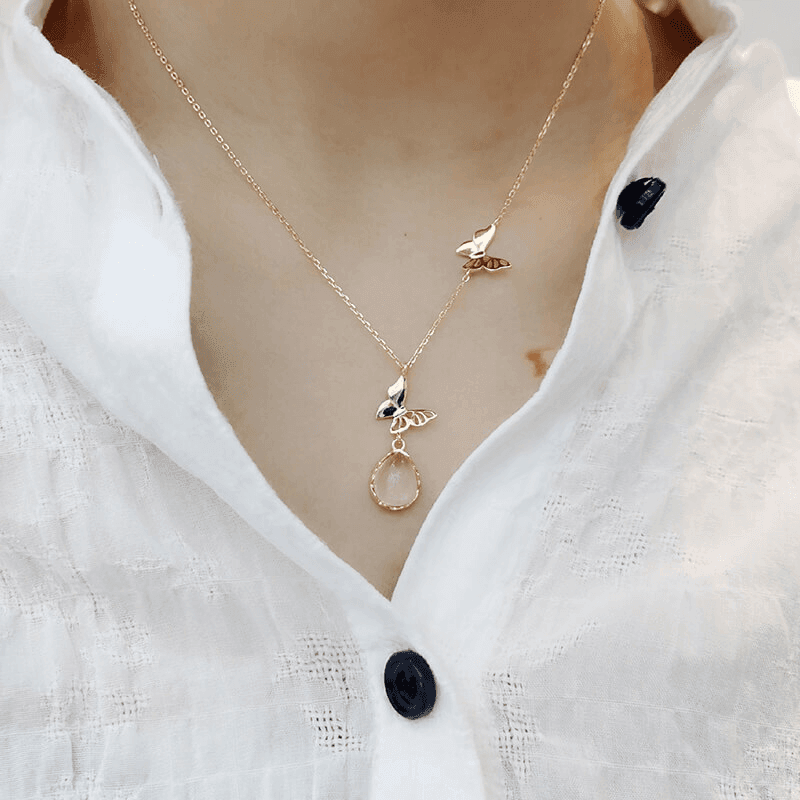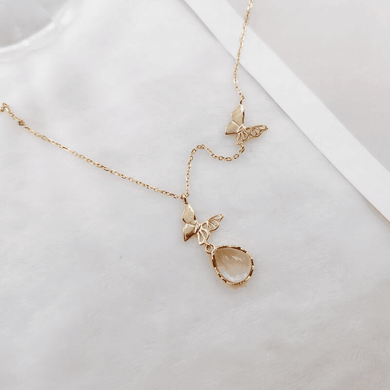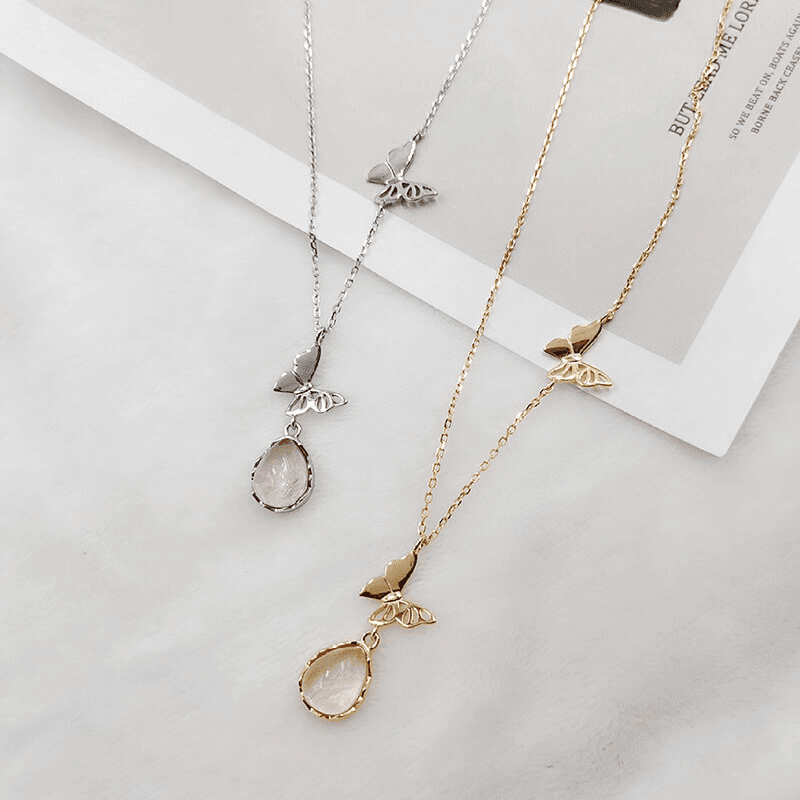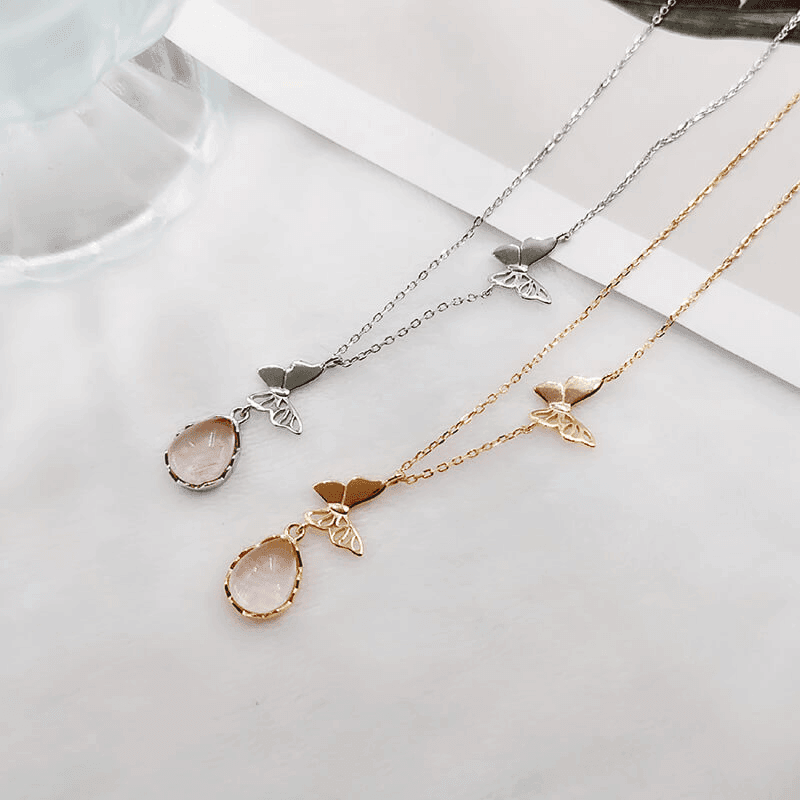 - This necklace can be used as engagement necklace and wedding necklace, because the combination of pink rose quartz and butterfly can perfectly show your elegance and charm.