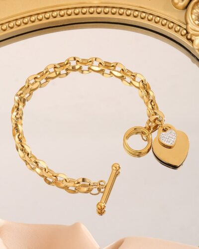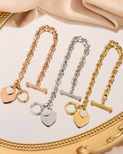 Bulk-Edelstahl-Gliederarmband mit Herz-Charme