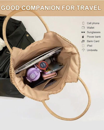 Made from high-quality natural straw, it boasts a lightweight feel that makes all-day carrying a breeze, while the soft polyester cloth lining protects your essentials from scratches and adds a polished finish.