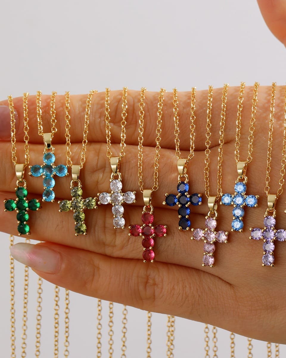 This gold cross birthstone necklace keeps shiny luster of sparkly zircons and beautiful design, and it will be an absolutely wonderful birthday gift for your loved ones.