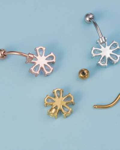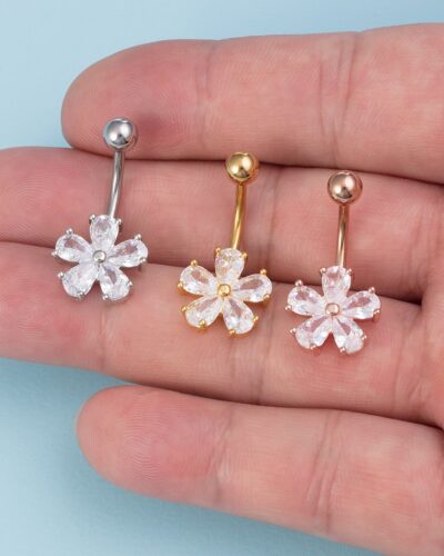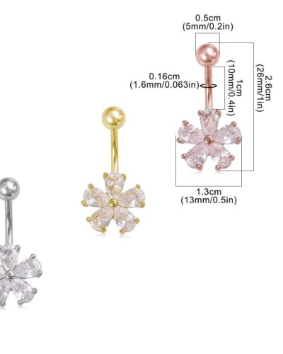 Belly Button Rings with Flower-Shaped Design. Made of stainless steel, the navel ring is in the shape of a petal and inlaid with a teardrop-shaped sparkling zircon. Designed for summer, it will sparkle and attract attention when you walk!