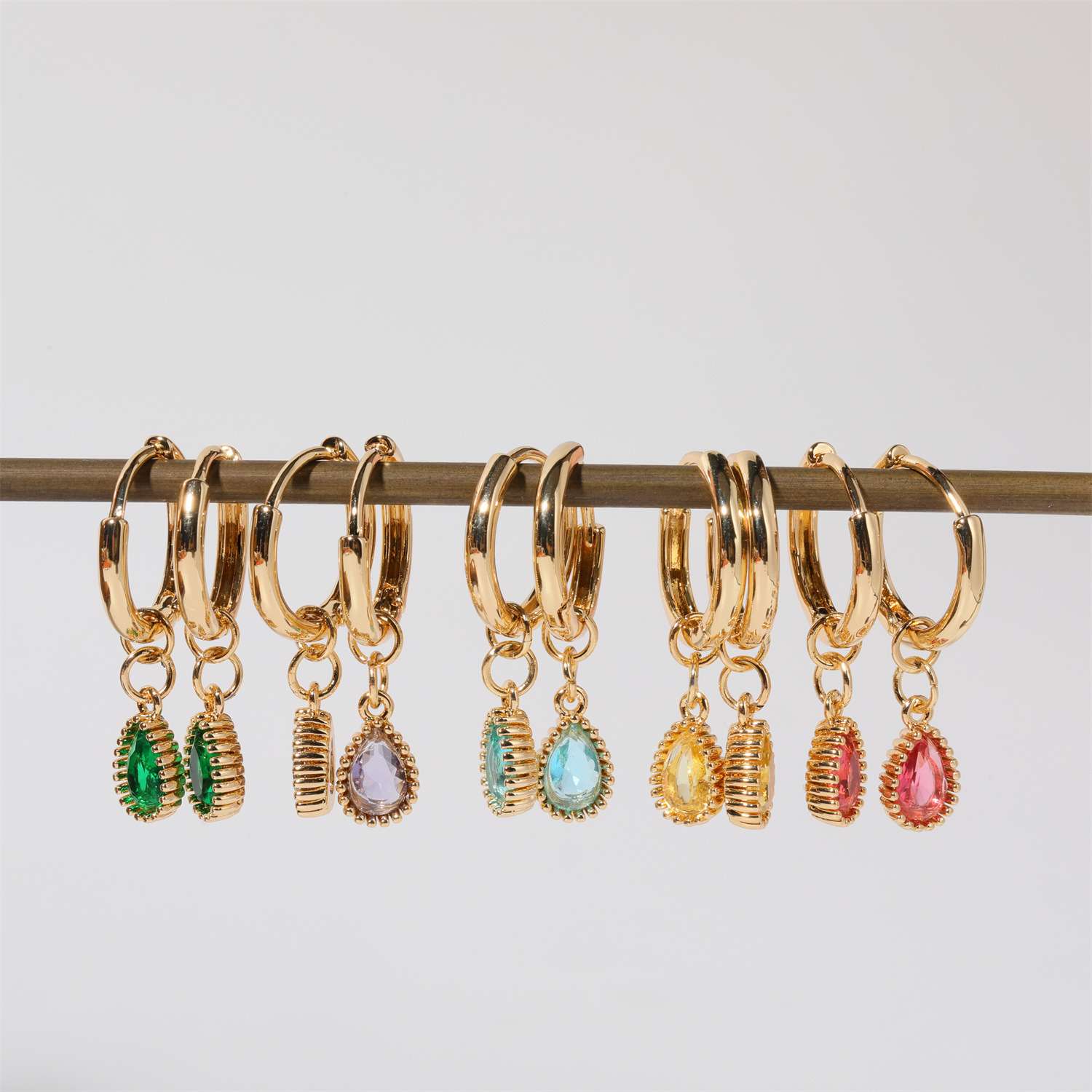 Colorful Zircon Waterdrop Pendant Birthstone Earrings for Mom