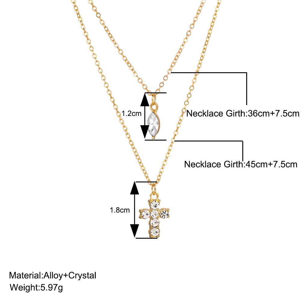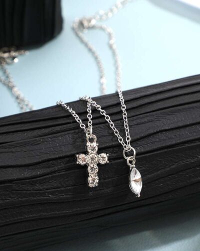 Cross Necklace for Women with Marquise Cut Pendant. The inner necklace features a marquise-cut pendant, while the outer necklace features a cross pendant. The design is simple yet elegant.