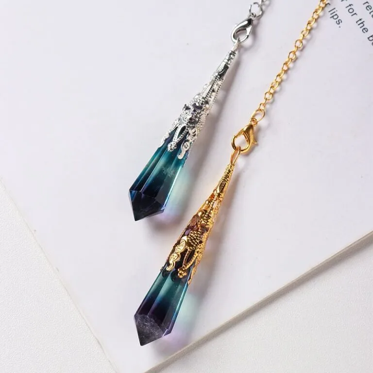 - Material: fluorita natural y cadena de plata/oro/bronce