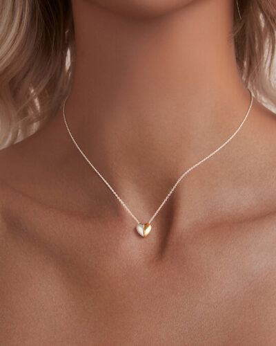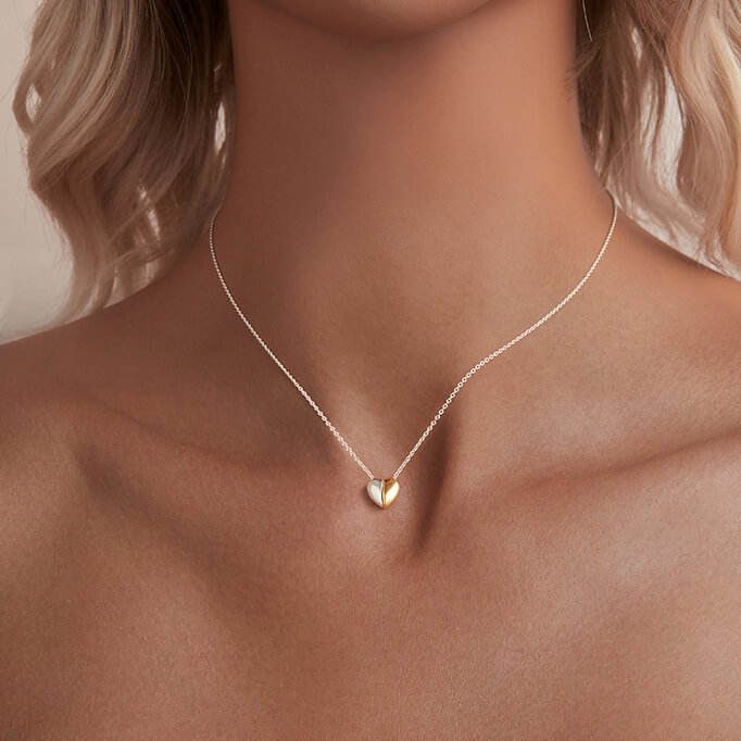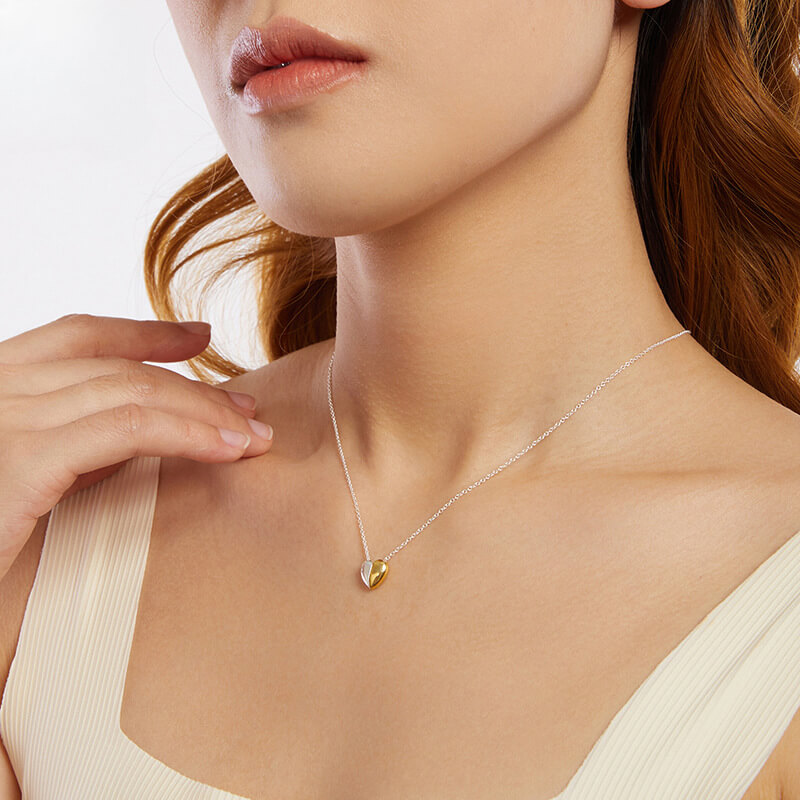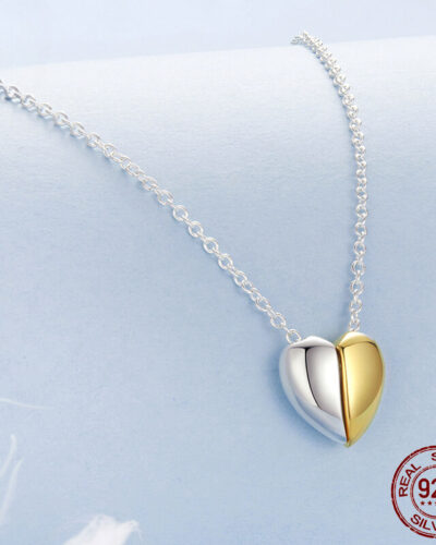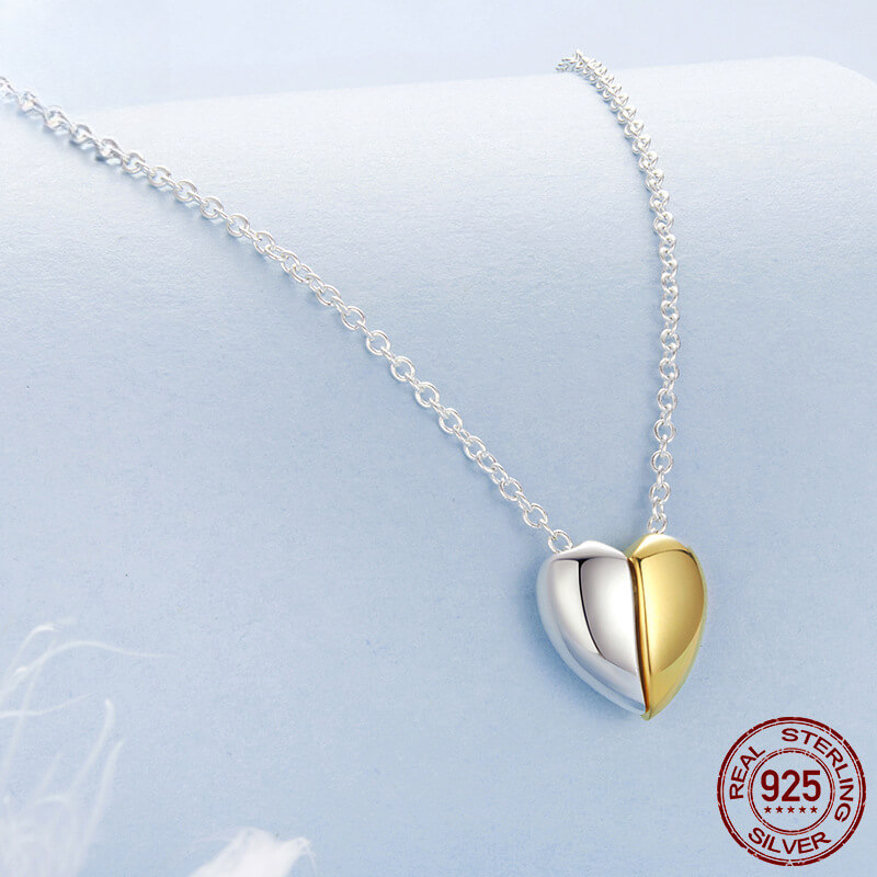 Este collar de corazón chapado en oro se destaca por un colgante de corazón hecho de dos colores juntos, por lo que es fácil de combinar con su estilo.