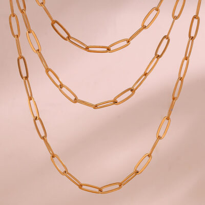 - Trendy stainless steel paperclip necklace chain for daily use.