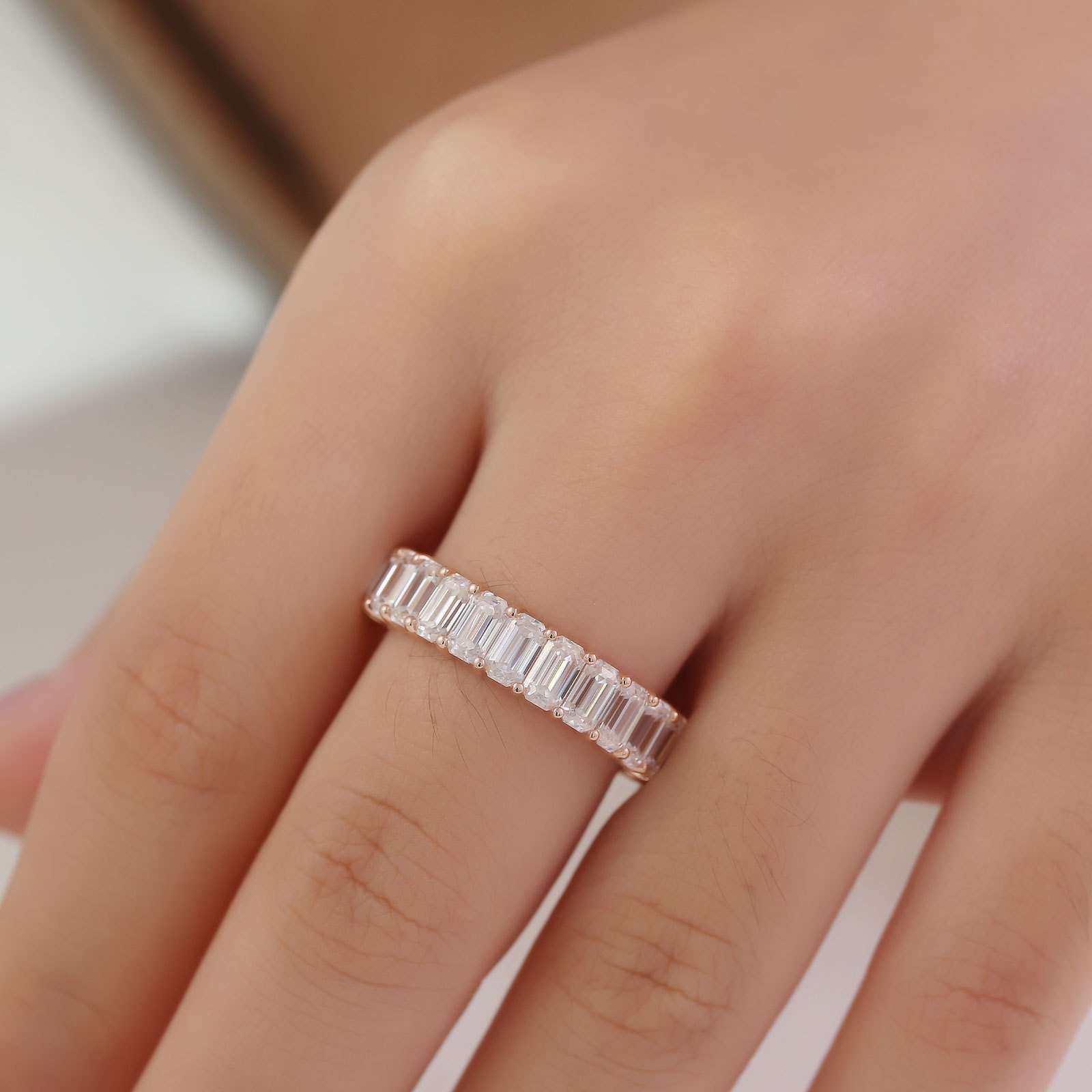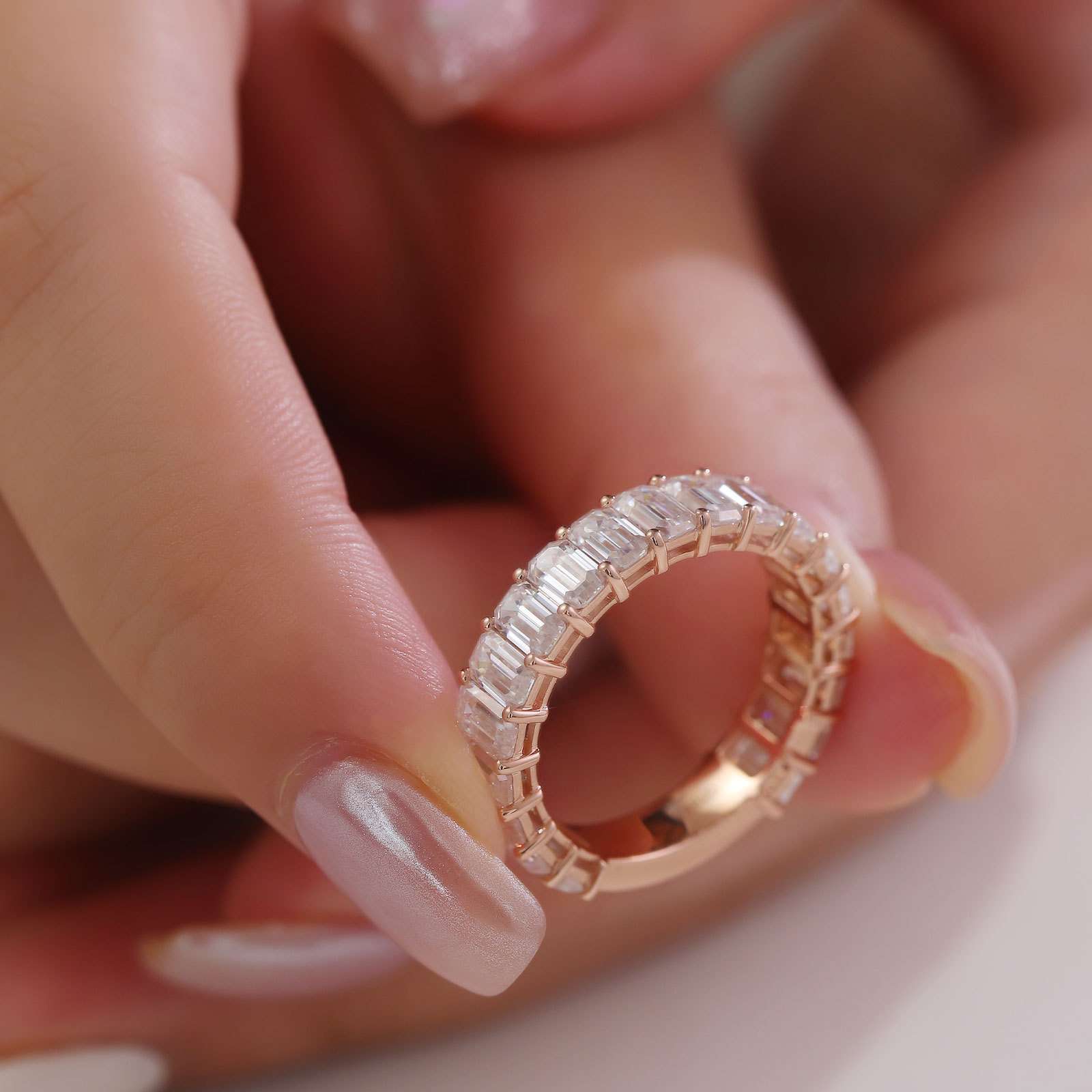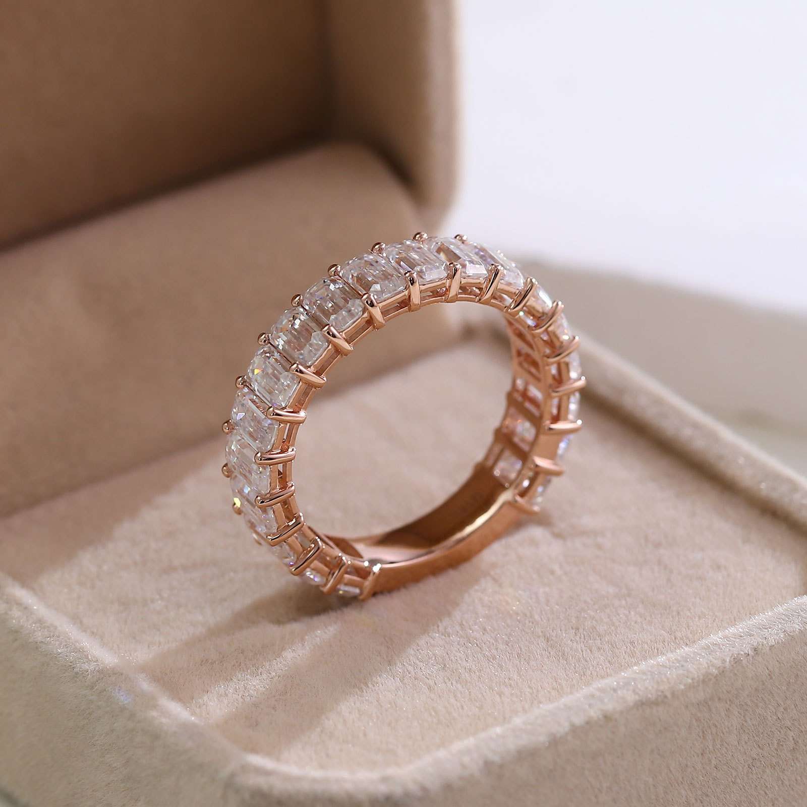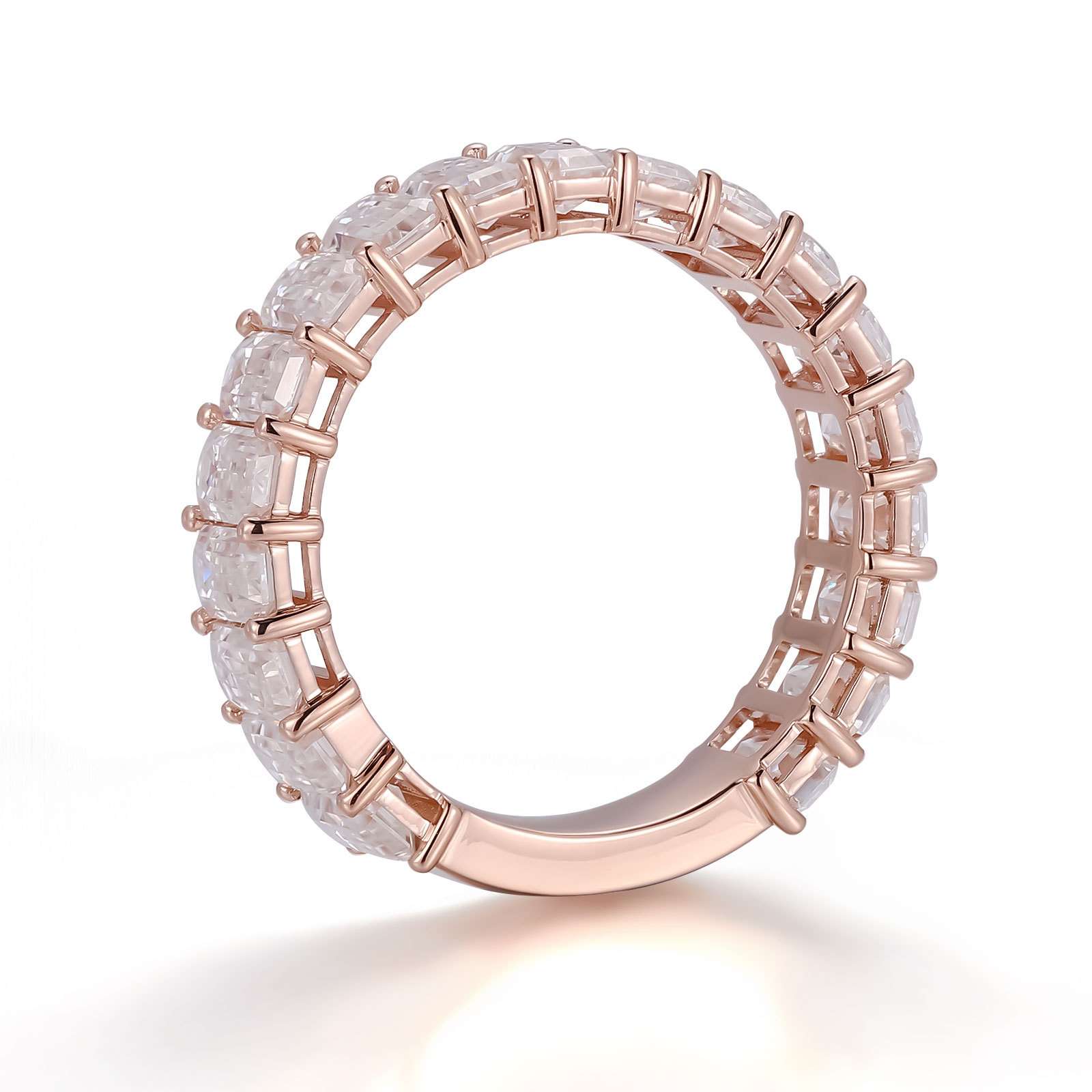 Anillo de tenis de oro rosa con moissanita talla cuadrada