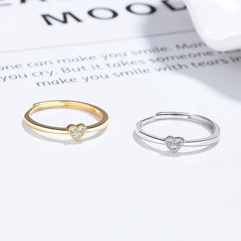 Adjustable Simple Heart Shaped Sterling Silver Rings Wholesale