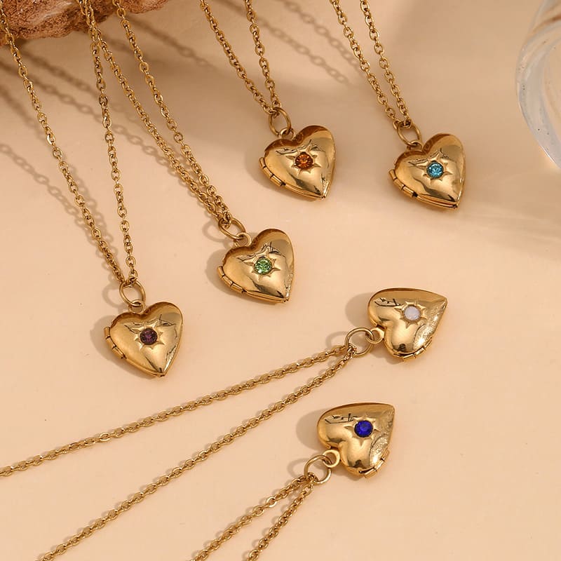 14K Gold Plating 12 Month Birthstones Heart Solitaire Necklace