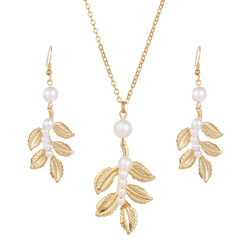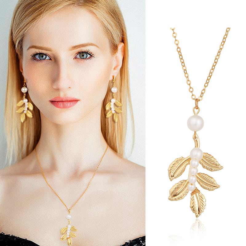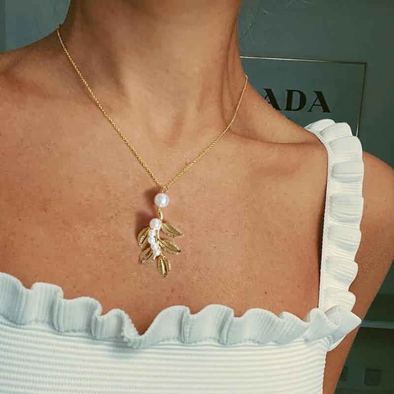 Collar de perlas Vintage Leaf Pendiente Estilo Barroco