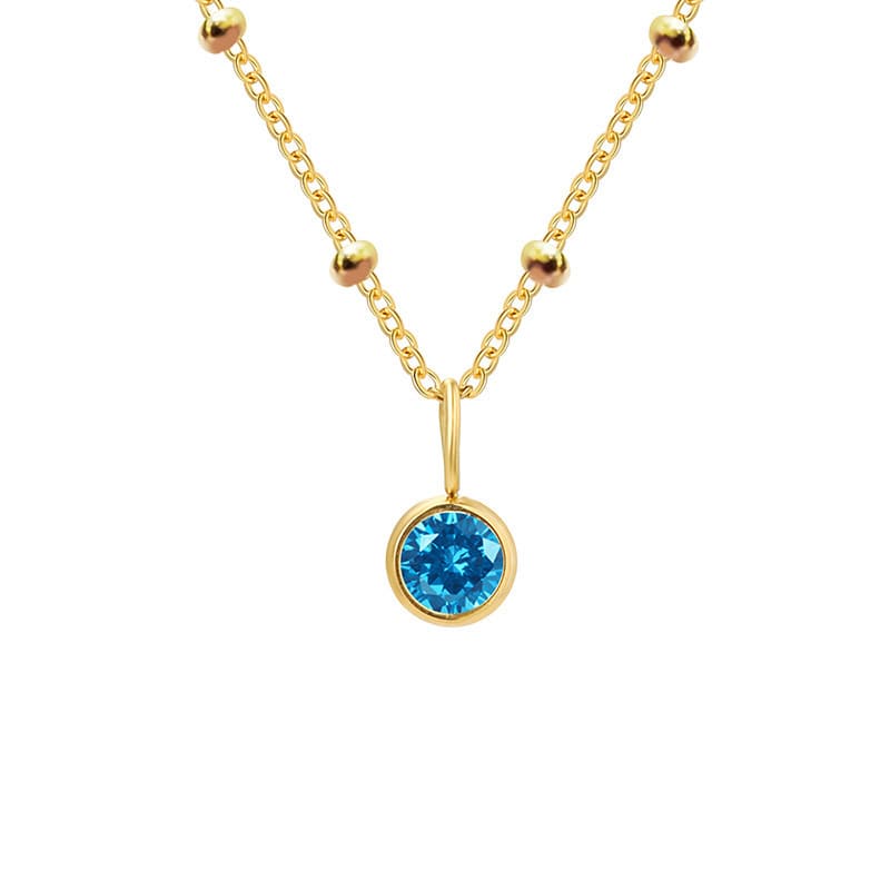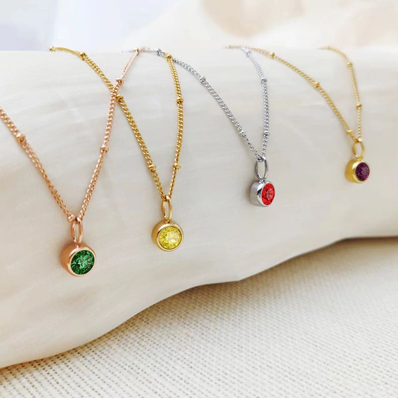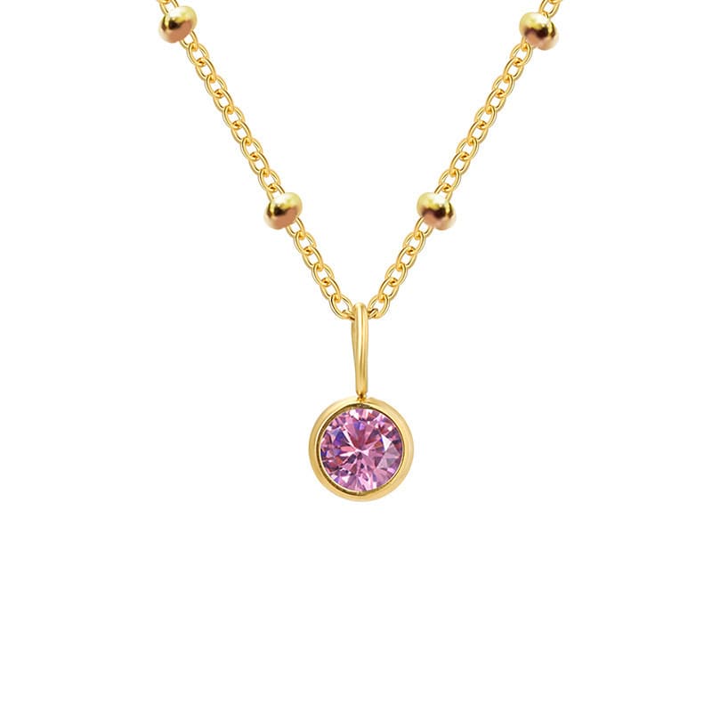 Bezel Zirconia 18K Gold Birthstone Pendant Necklace