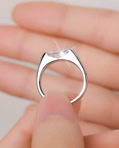 Anillo cuadrado de plata de ley S925 con moissanita de 2 quilates