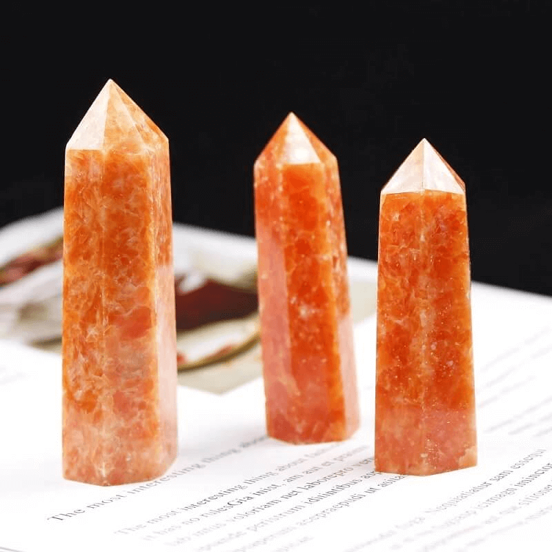 - Natural sunstone crystal tower can bring wisdom and courage, increase work or study efficiency. At the same time, sunstone is believed to reduce anxiety and stress, transform negative energy into positive energy and happiness.