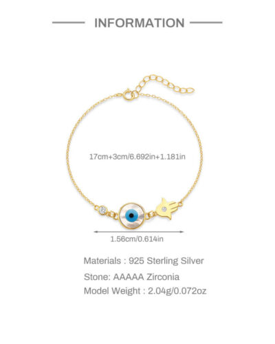 Made of high quality 925 silver plated with 18k gold, the bracelet with the evil eye won’t tarnish even after wearing it for a long time.