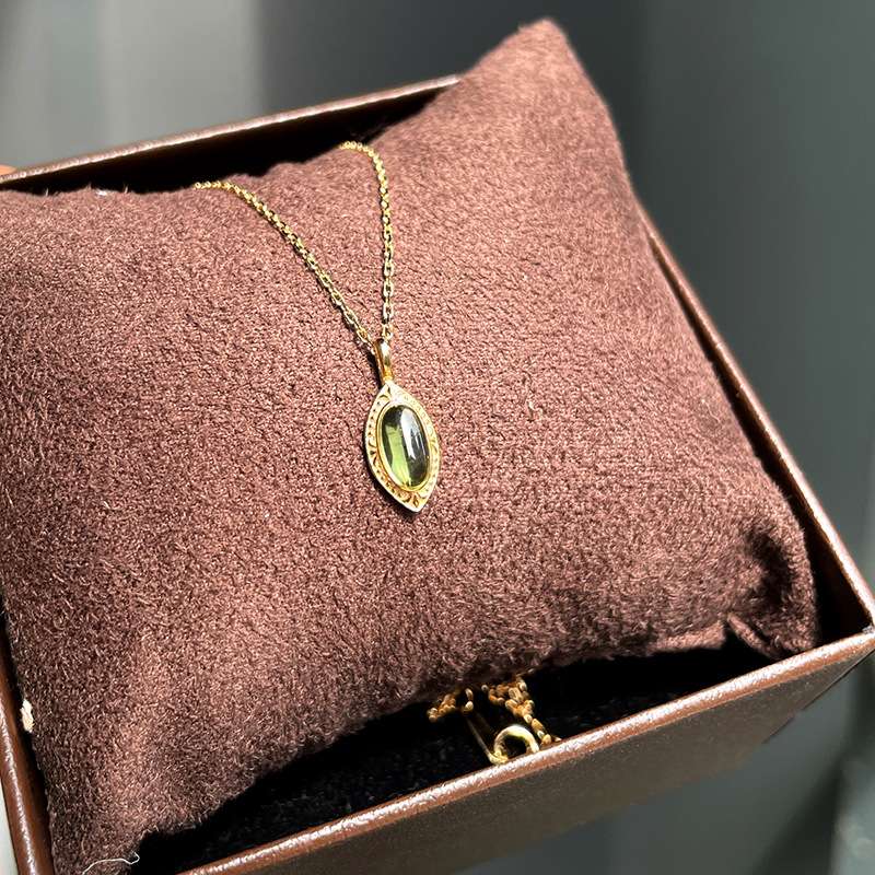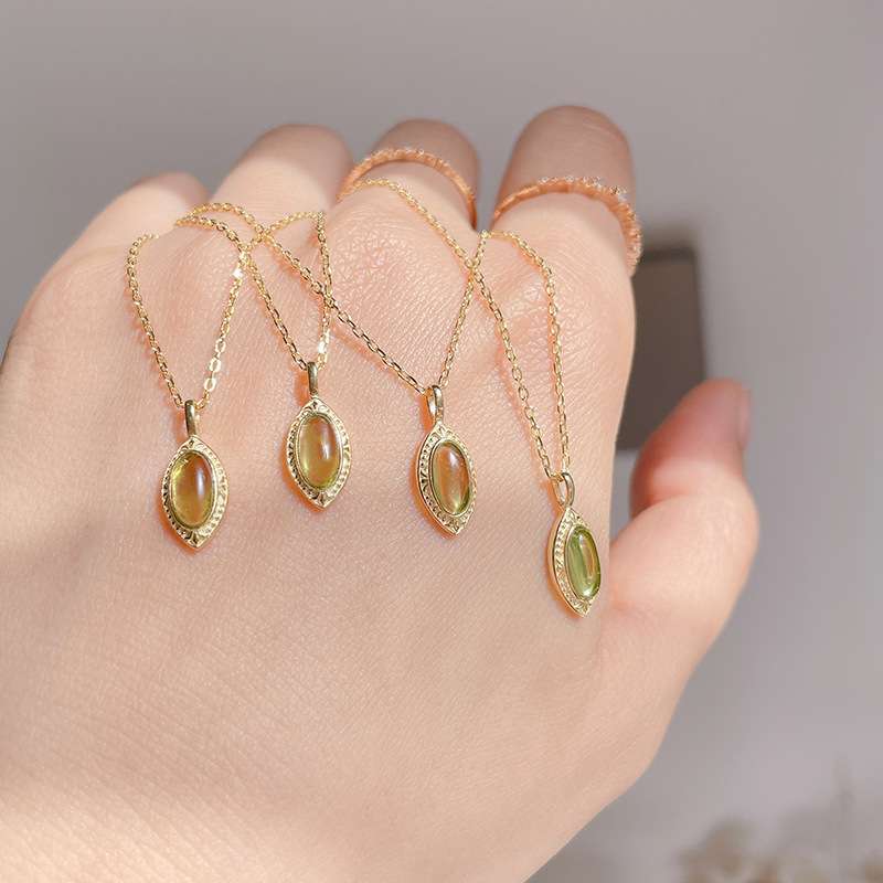 - This silver peridot birthstone necklace is crafted from a high-quality yellow-green peridot, polished into an oval shape. Paired with a 925 sterling silver chain and gold plating, it’s hypoallergenic even with prolonged wear, allowing you to exude an elegant aura.