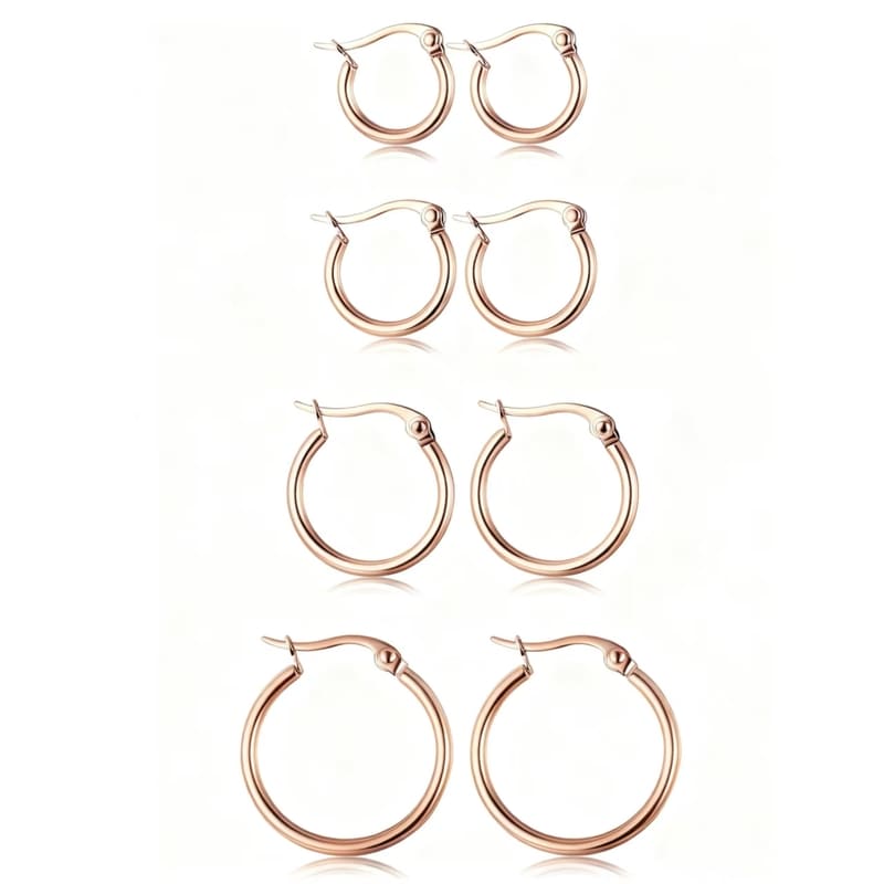 4 paria pyöreitä ruostumattomasta teräksestä kultaisia renkaita päivittäinen kuluminen